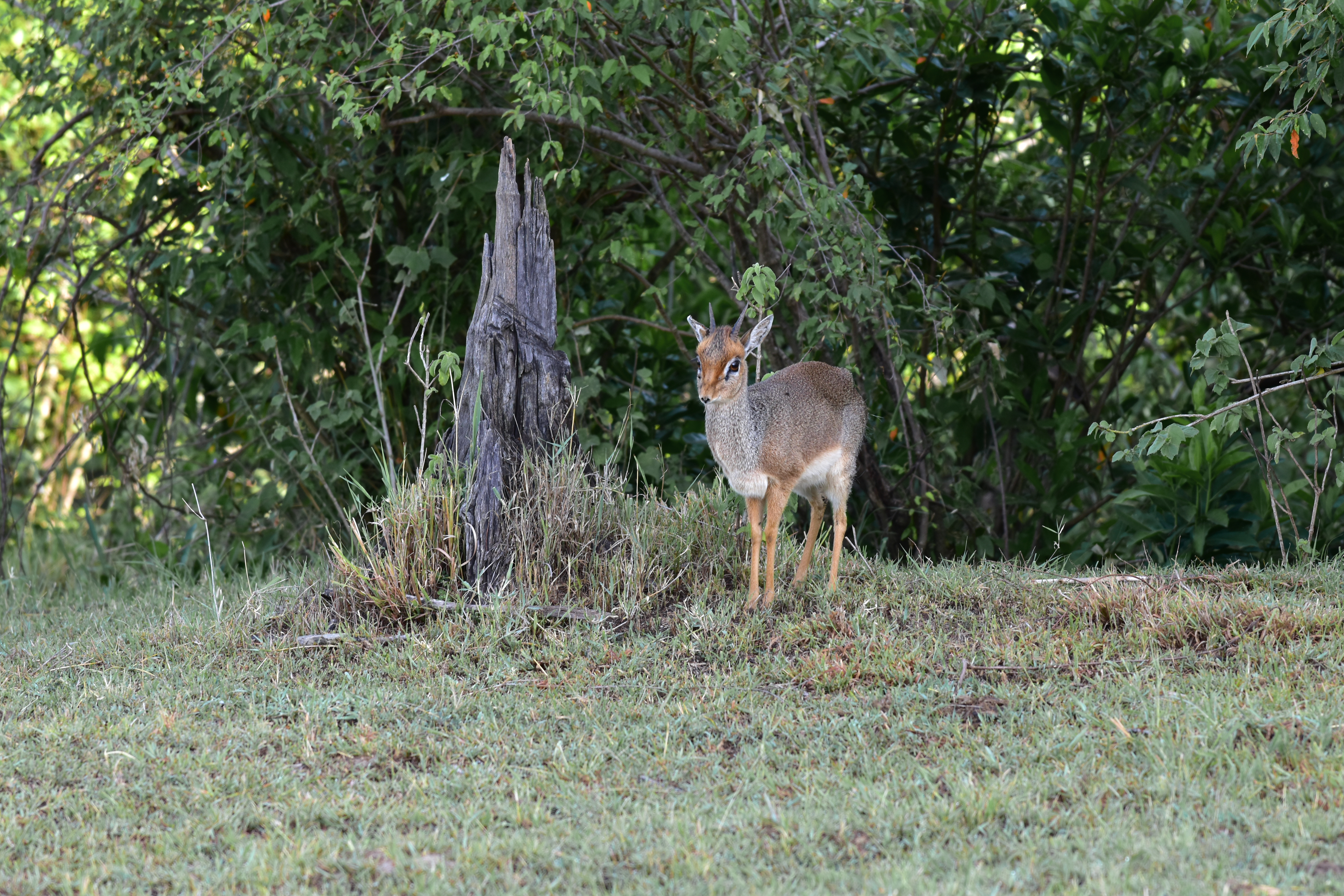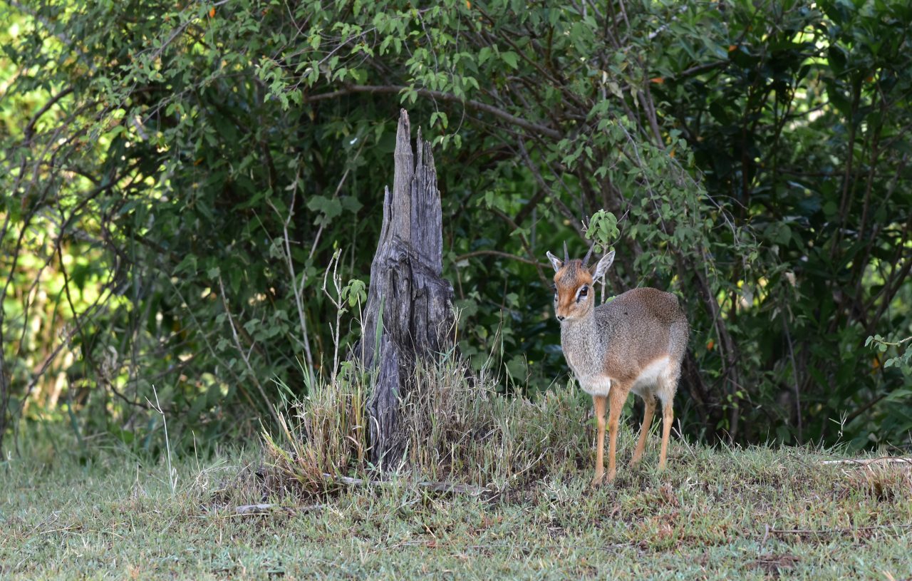 Dik-Dik – This tiny Antelope is shy and elusive, concealing themselves in brush most of the time. They have well-developed sight, scent, and hearing. When Dik-Diks feel they’re in danger or hear the alarm calls from other animals, they hide instead of fleeing from predators. When frightened or disturbed, they make a whistling sound through their nose that sounds like ‘zik-zik,’ which is probably how they got their name.