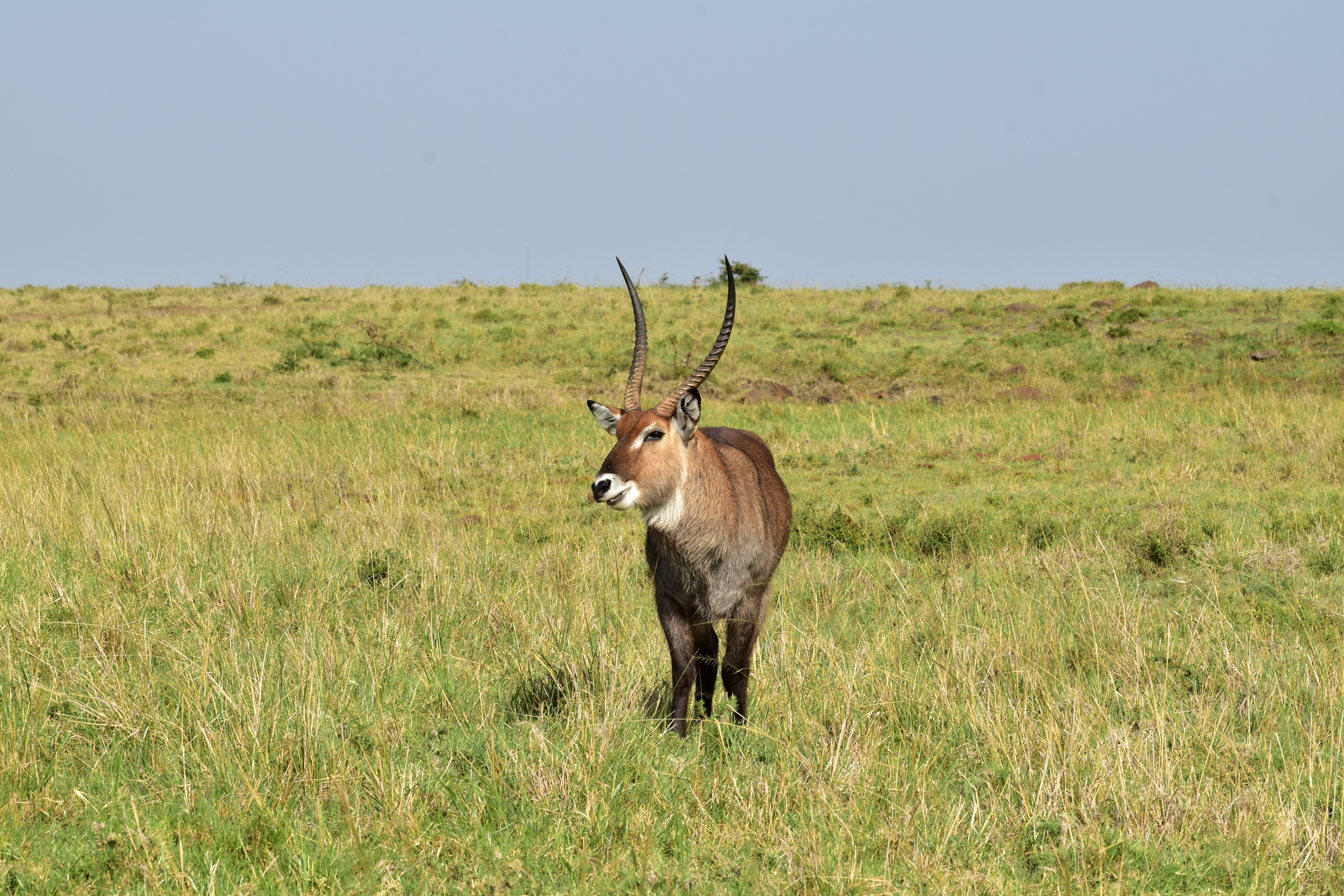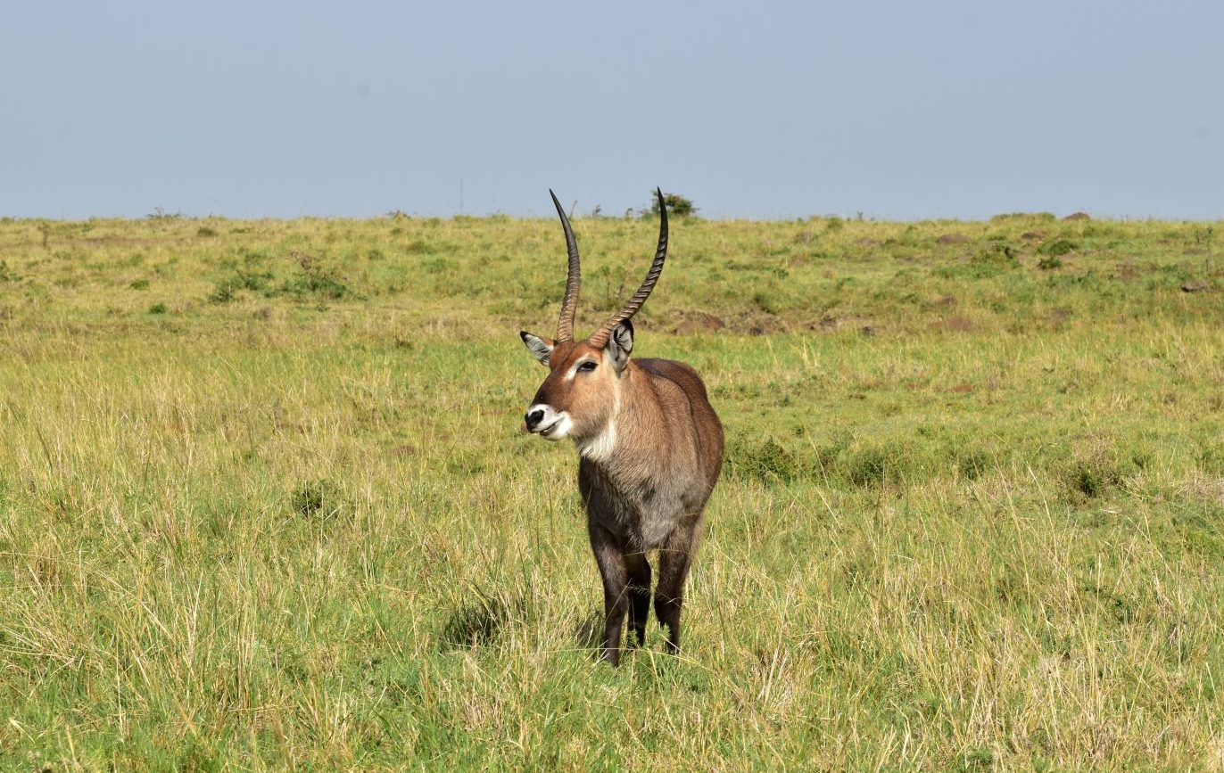 Waterbuck must remain close to a water source. However, this habitat furnishes these antelopes with a year-round source of food. Mainly grazers, they feed in the mornings and at night and rest and ruminate the remainder of the time. Males are larger than the females and have horns, which are prominently ringed and as long as 40 inches.