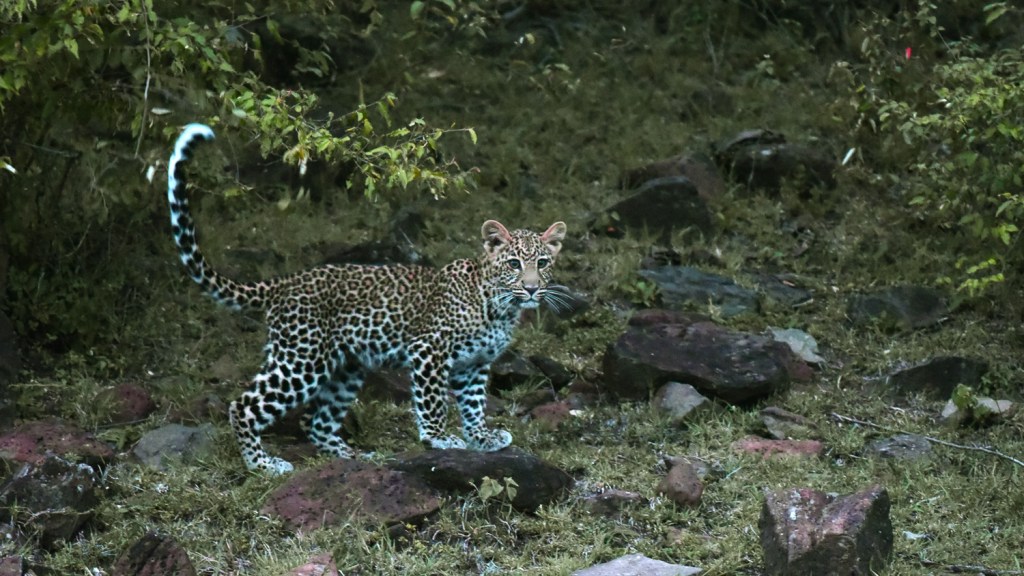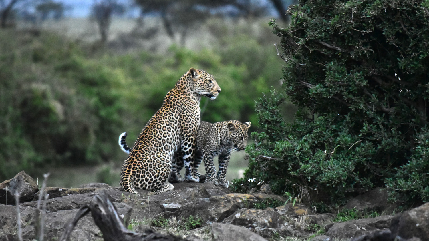 Mother, ‘Natito’, with her six month old male cub, is heading out at dusk to hunt.