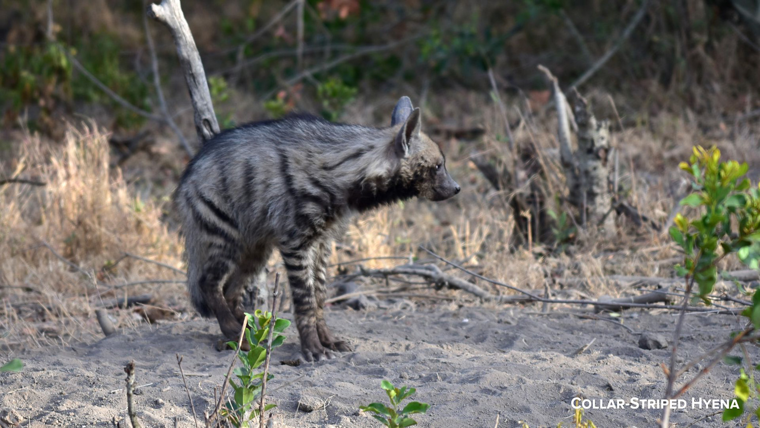 A rare Collar-Striped Hyena. Unlike the Spotted Hyenas, these animals are solitary and hunt alone. Due to habitat loss, these animals are critically endangered. We were very fortunate to have seen one.