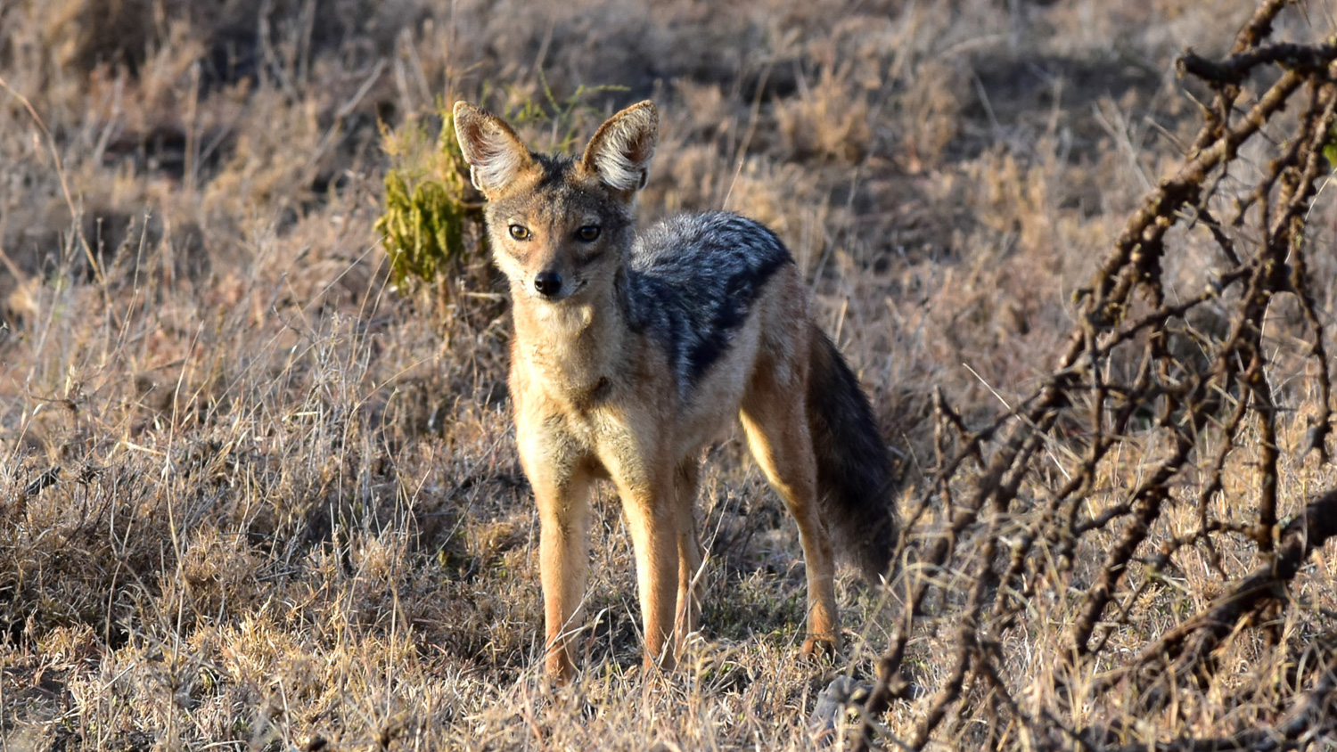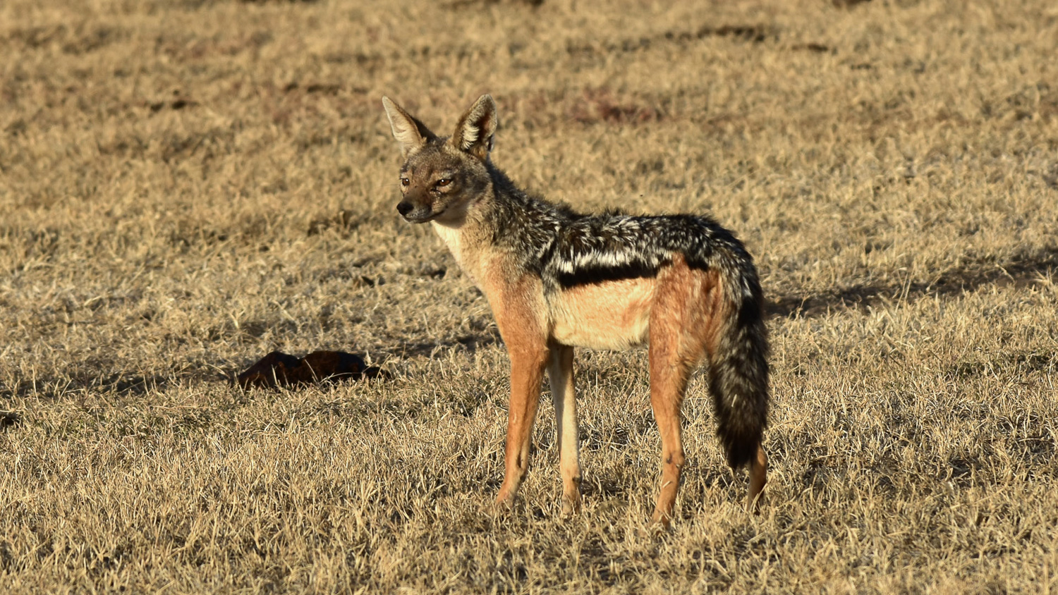 Jackal at sunset, ever watchful, for prey opportunities