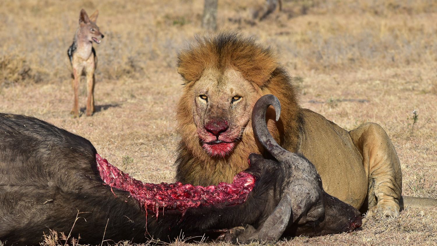 Enjoying a breakfast of Buffalo, whilst a Jackal waits for their turn