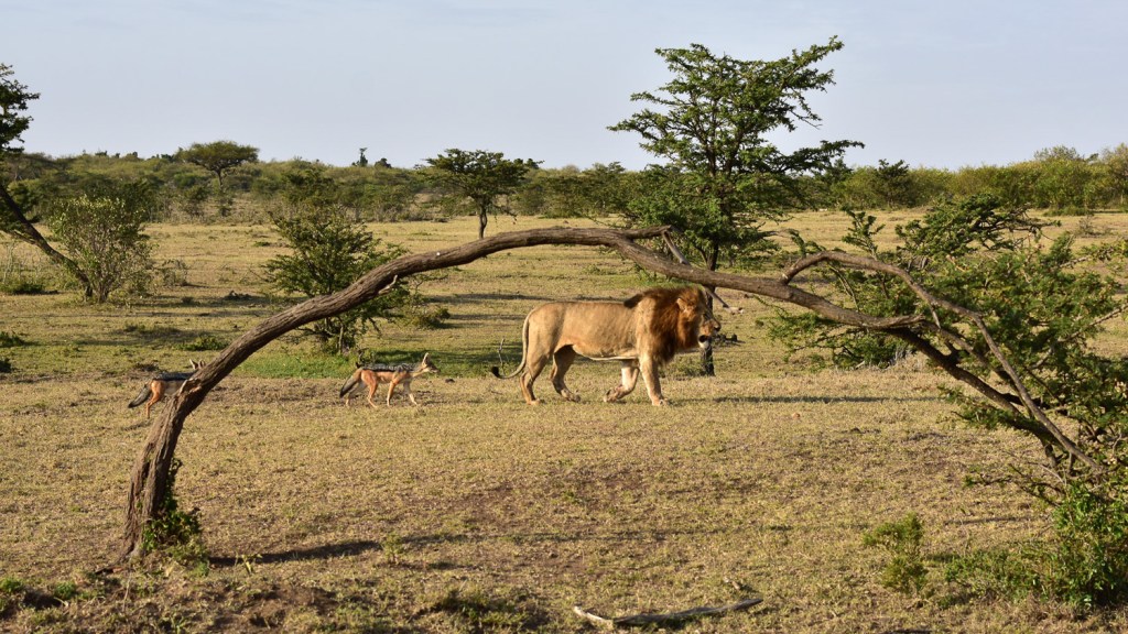 Me and my shadows – two Jackals following the Lion hoping he will lead them to a kill