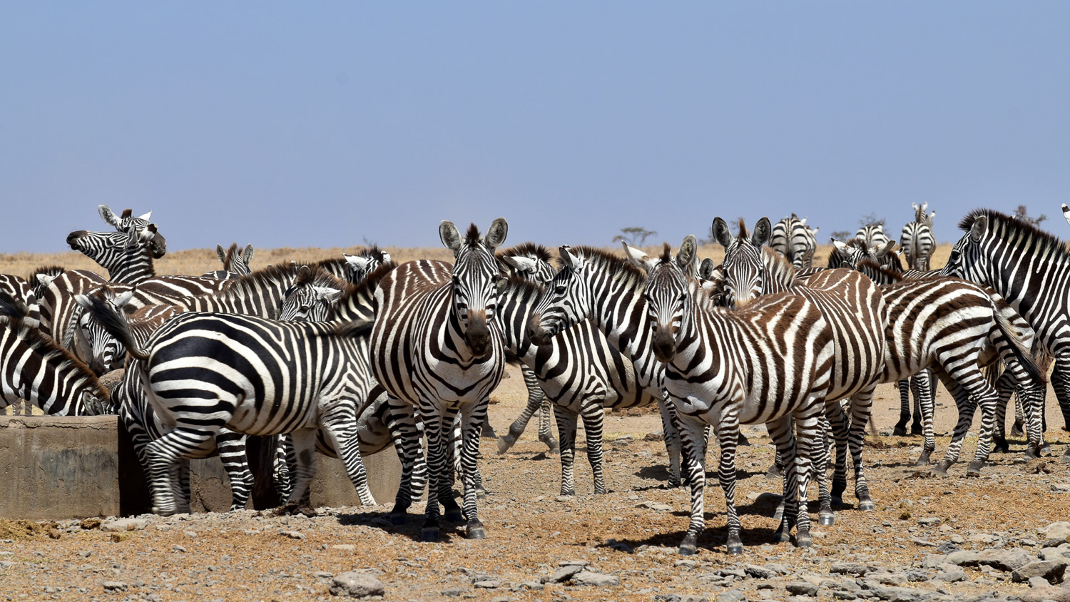 Huge gathering of Zebras at the watering trough. Frustration was evident in their desire to get to the water.