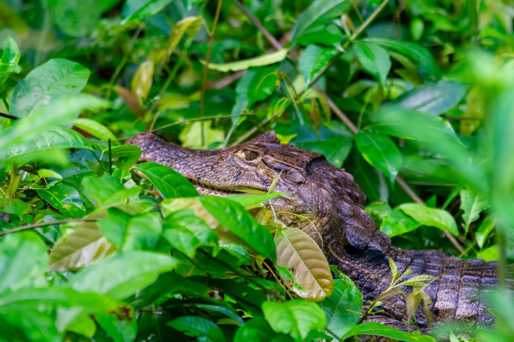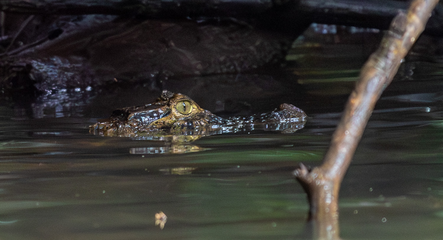 The Caiman, which typically grows to about 6 feet, is the smaller cousin of the crocodile and is found in fresh water habitats.