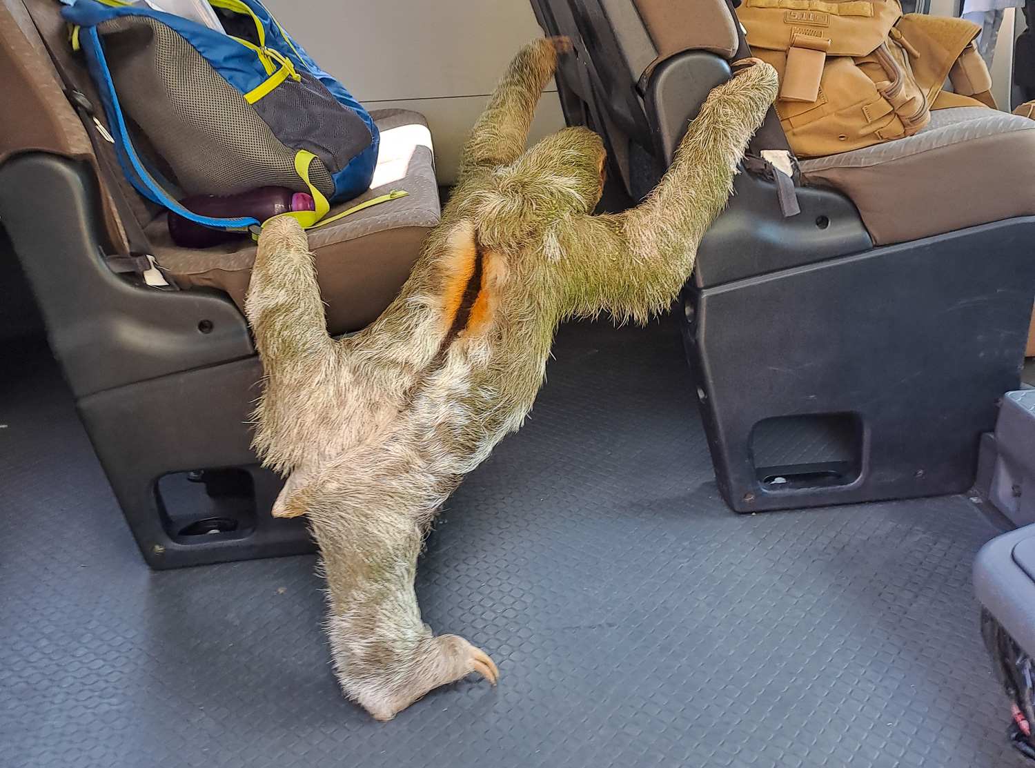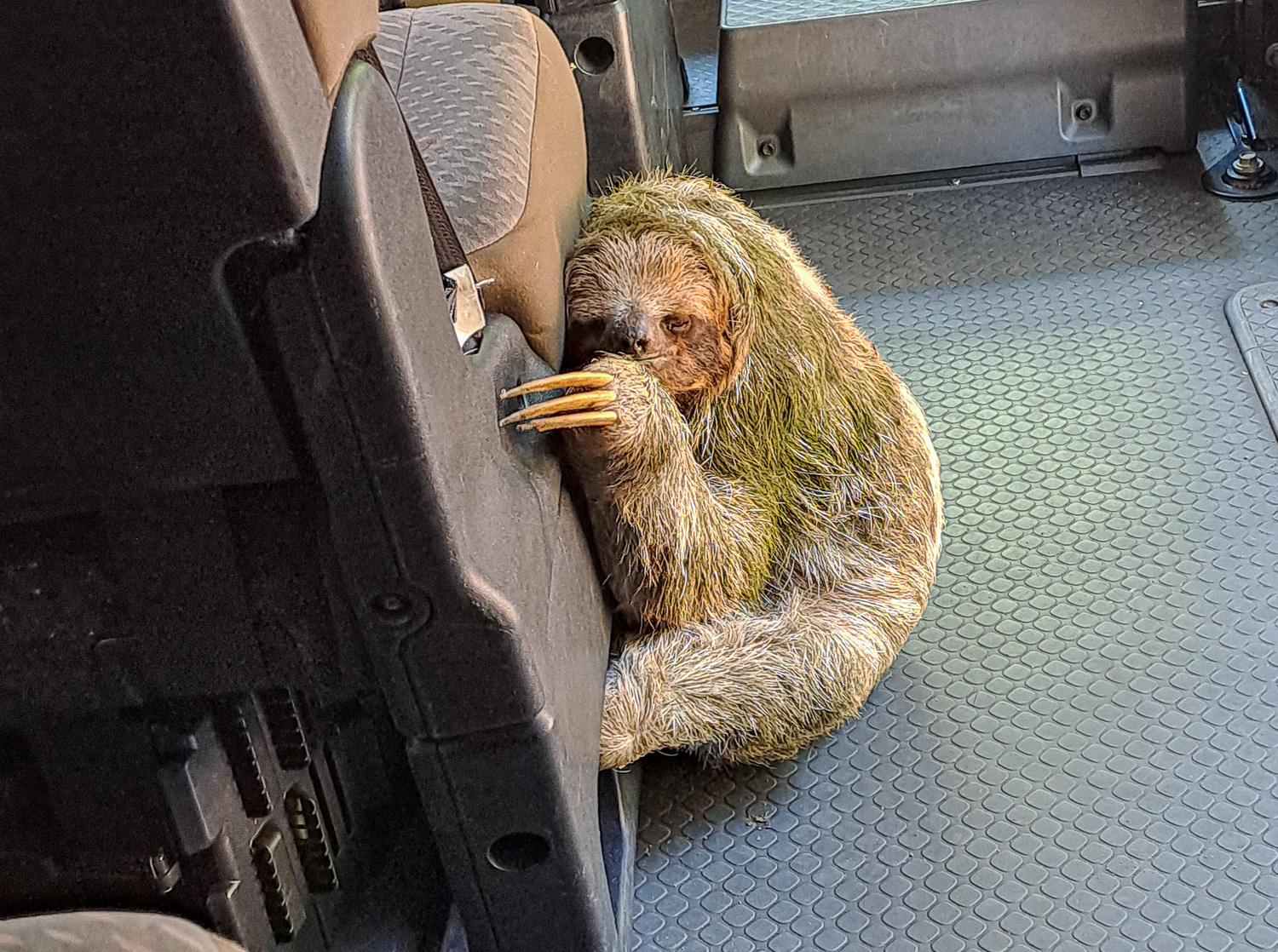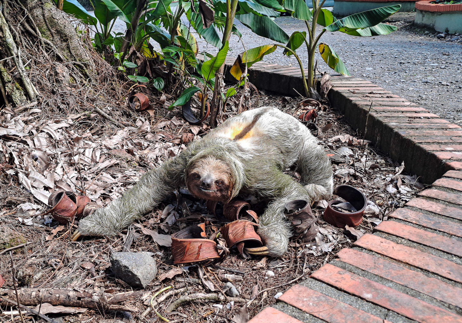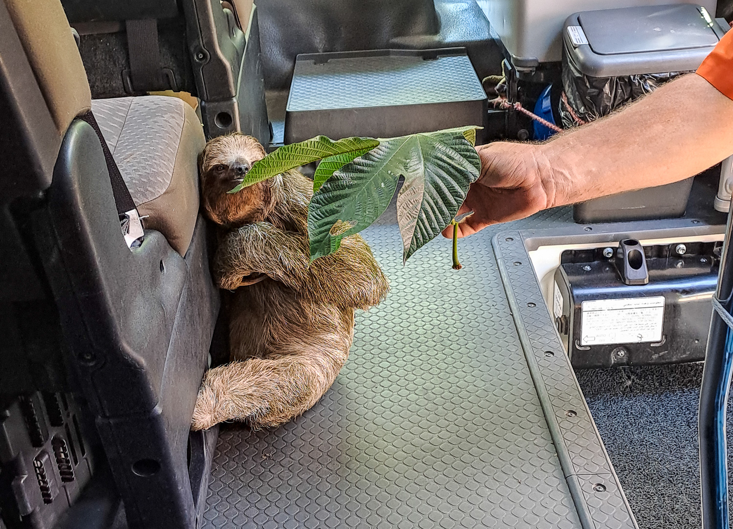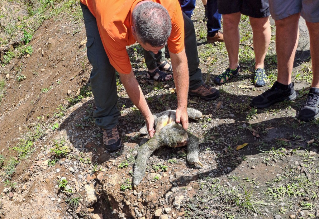 Whilst driving from Tortuguero to our next destination, our guide noticed a young sloth by the side of the road. She was trying to cross the busy highway. We stopped and moved her further back away from the road. She then started to crawl towards the highway again. It was a unanimous decision to then transport her to the other side of the road!