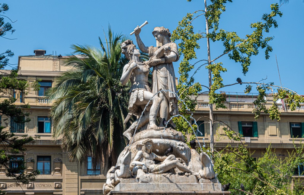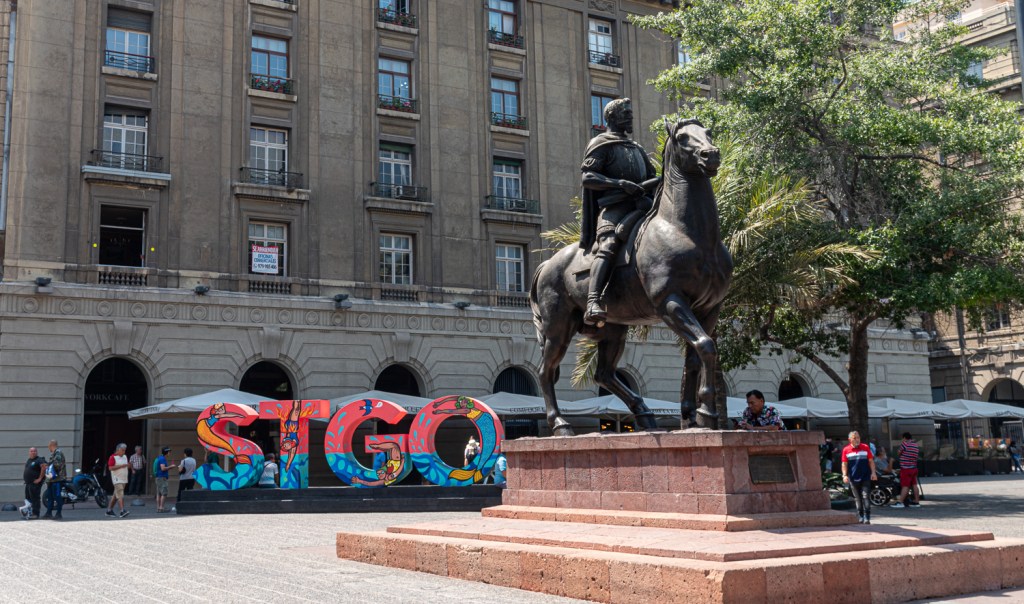 The equestrian statue of Pedro de Valdivia sits next to the STGO sign, which is the city’s abbreviation for Santiago. This Spanish conquistador was a ruthless military leader against Peru and the indigenous people. His success led him to become the First Royal Governor of Chile in the mid-16th century. He is also considered to be the founder of Santiago in 1541.