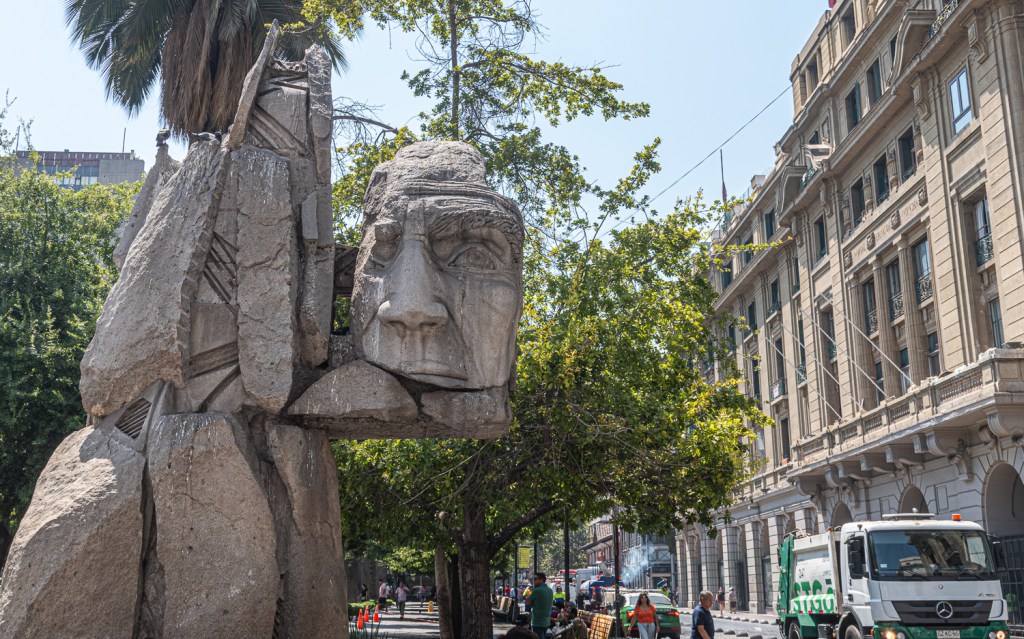 In contrast to the traditional statues, this modern controversal sculpture is a monument to the indigenous peoples of Chile