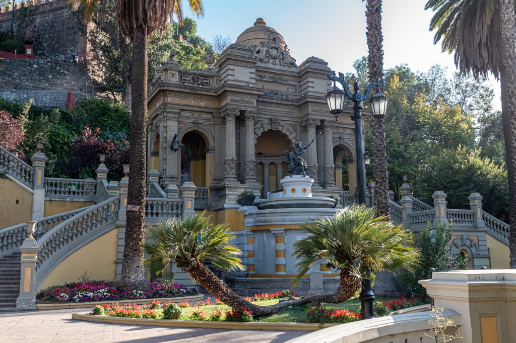 Santa Lucía Hill comprises a 16 acre park adorned with ornate facades, stairways and fountains. At the top of the hill there are two forts dating back to 1816 and at the highest point there is a viewpoint with a 360 deg view of the Santiago skyline.
