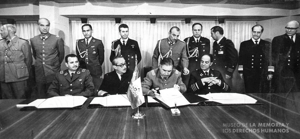 The famous photo from 1973 of Pinochet and his Junta signing the legislation that started the new era of dictatorship