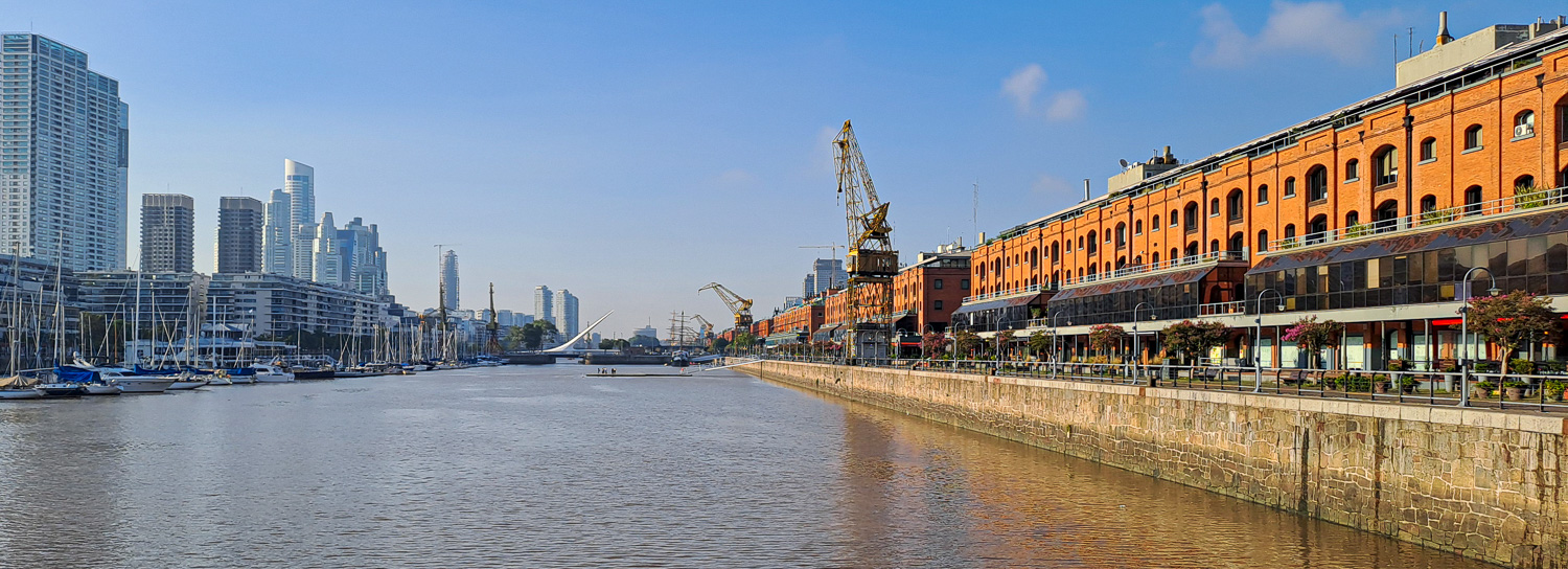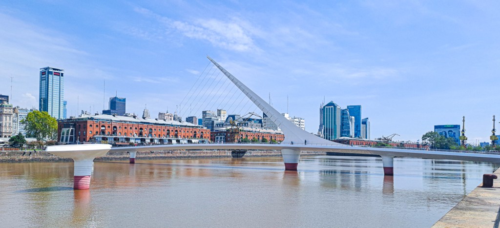 Crossing the old docks canal is a rotating footbridge called the El Puente de la Mujer (Women’s Bridge). The bridge represents a couple dancing the tango, with the white mast symbolising the man and the curve of the bridge, the woman. It has a large turning mechanism, allowing it to swing open to allow sailing ships to pass.