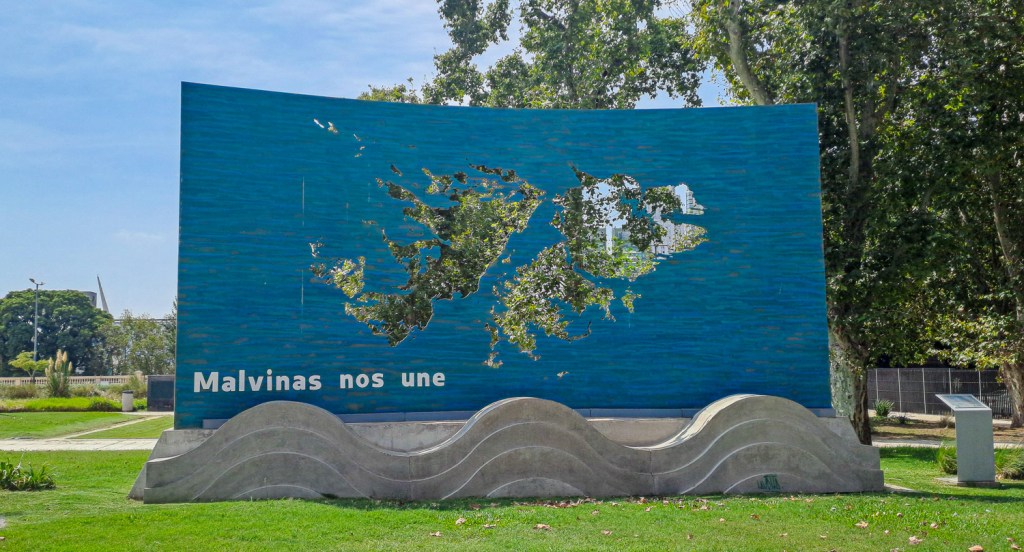 The Malvinas nos une (Malvinas unites us) sculpture – another reminder of the Falklands conflict