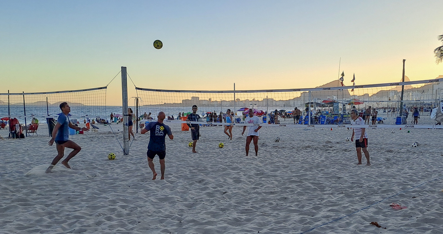 This is the beach sport that is becoming very popular, replacing the traditional volley ball. The very acrobatic game of Foot-Volleyball (Futevôlei) is a union of football and volleyball. The ball needs to pass to the other side of the net with the help of any part of the body except the arms, forearms, and hands as in football.