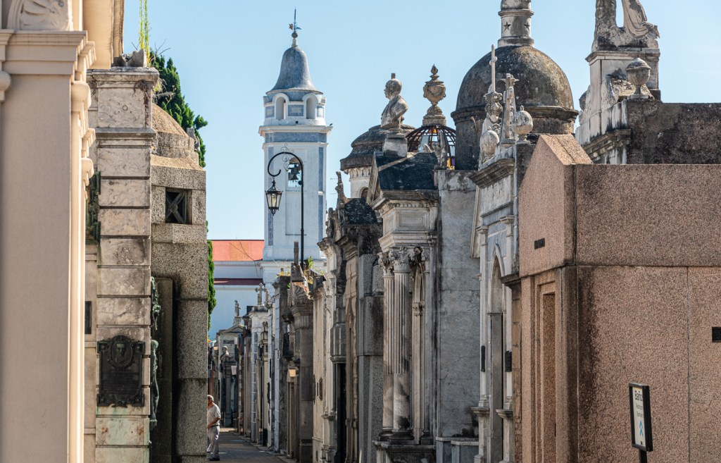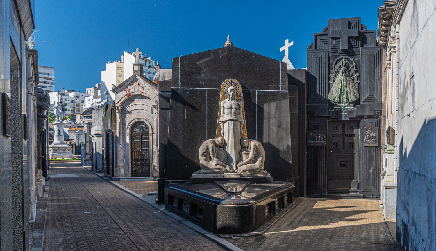Recoleta Cemetery became the city’s first public cemetery in 1822. It is an eerily beautiful place, with shadowed walkways and towering marble mausoleums rich in Art Deco, Art Nouveau, baroque and neo-gothic architectural styles, Masonic symbols and powerful religious iconography.