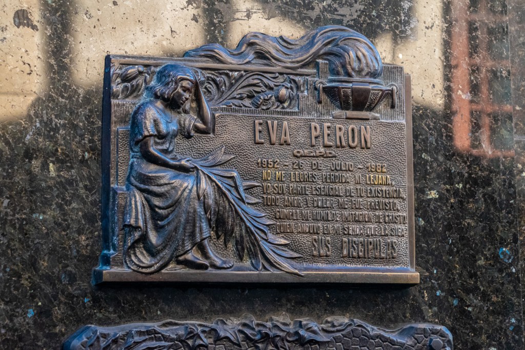 One of the most visited plots is the final resting place of Eva Perón, whose remains are in the Duarte family mausoleum.
