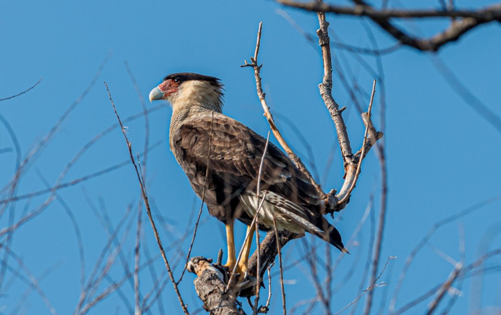 The Crested Caracara, also known as the Mexican eagle, is a bird of prey found throughout Central and South America