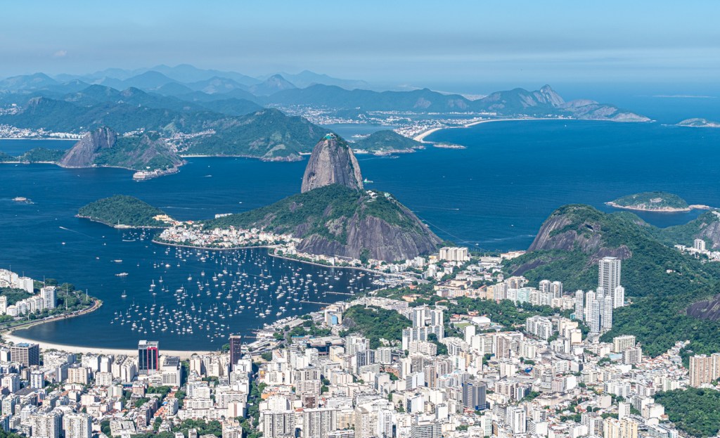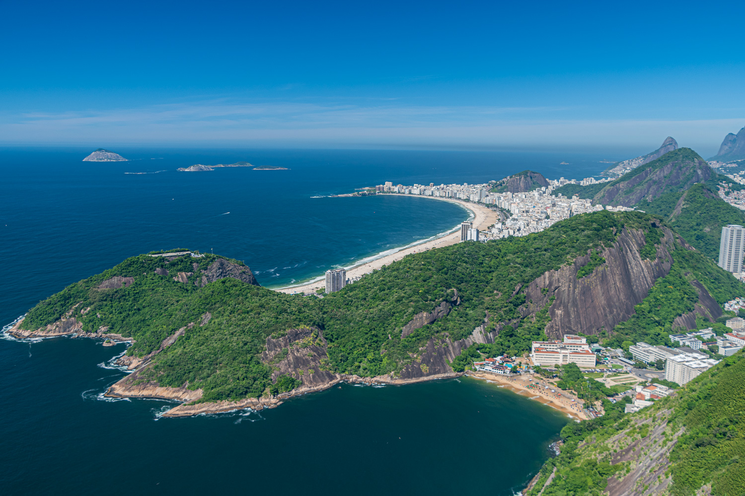 Sugarloaf Mountain is a peak situated at the mouth of Guanabara Bay on a peninsula that juts out into the Atlantic Ocean. Rising 1,299 ft above the harbour, the peak is named for its resemblance to the traditional shape of concentrated refined loaf sugar. It is known worldwide for its two-stage cableway and panoramic views of the city and beyond. Sugarloaf Mountain became part of a UNESCO World Heritage Site in 2012.