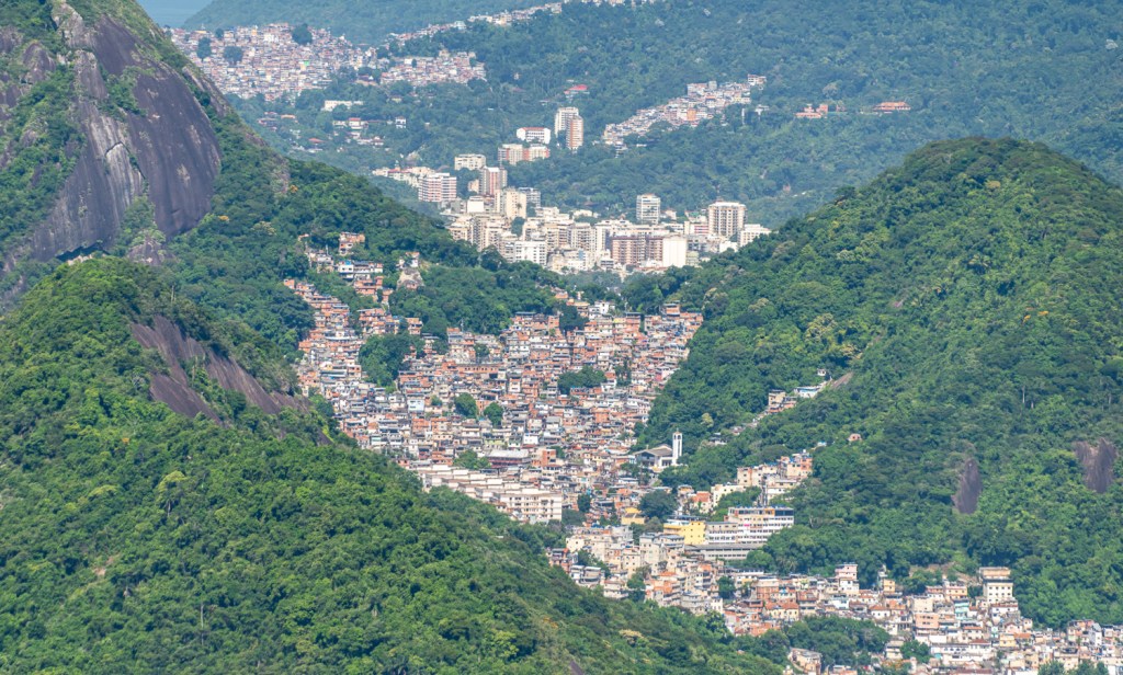 The box-shaped, flat-roofed makeshift homes, stacked upon each other on the hillside, can be seen filling every spare area between the peaks and the more affluent developed areas.