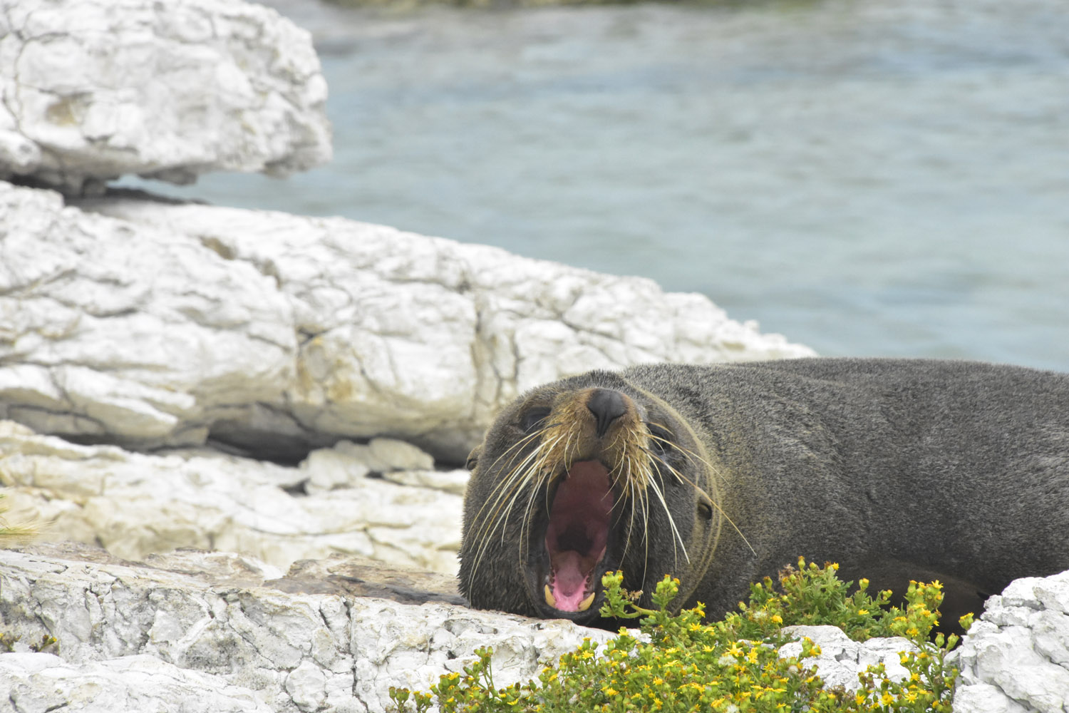 Our first stop in the South Island was Kaikoura, where we hiked around the Kaikoura Peninsula and viewed the amazing shallow limestone bays and got up close to a lovely colony of fur seals.