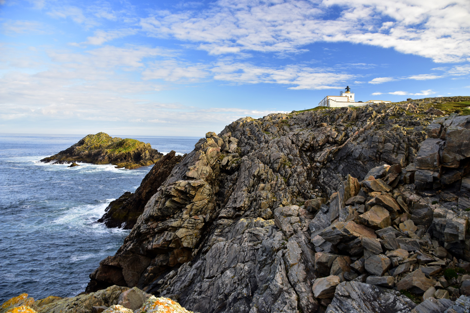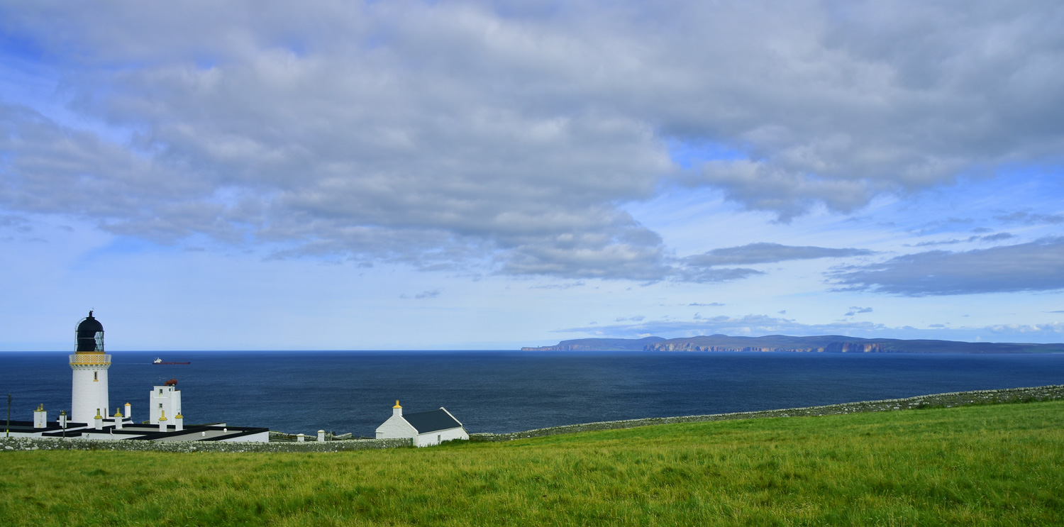Dunnet Head Lighthouse and the Orkney Islands in the distance
