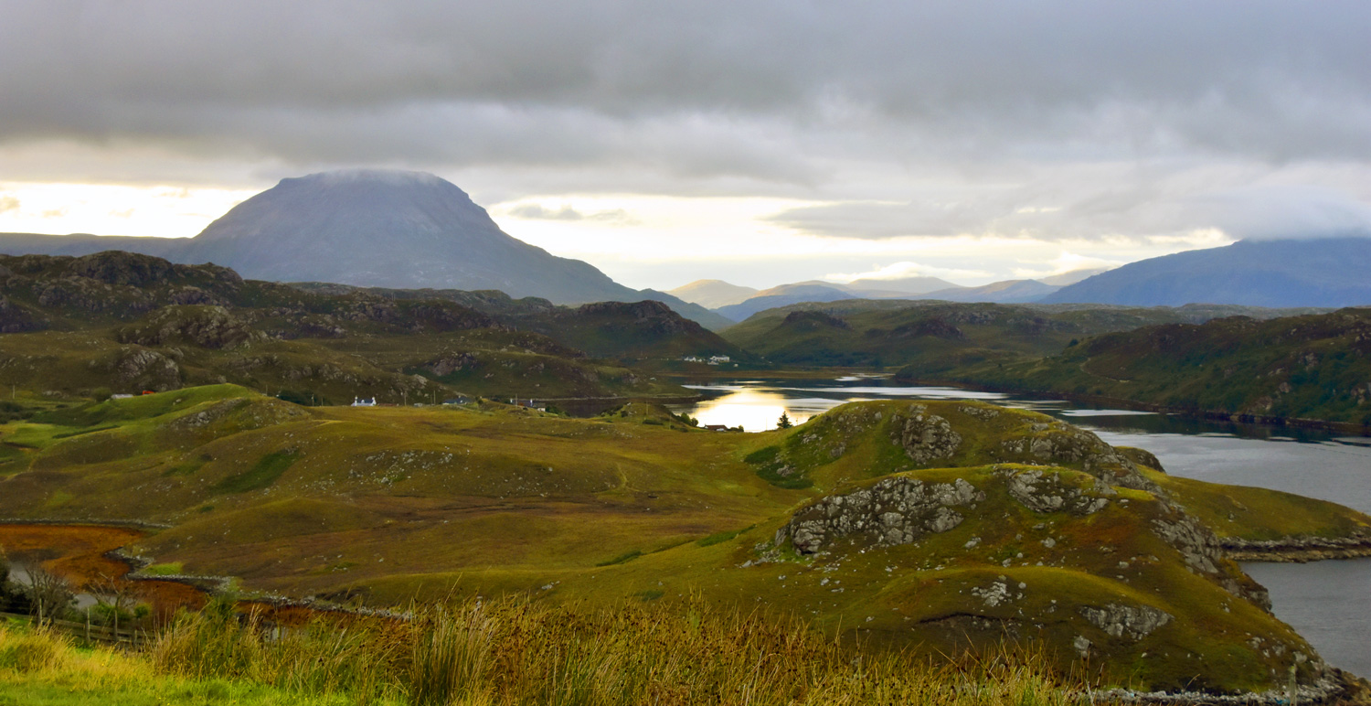 The views from the Kyle of Tongue are dominated by the 2,509 ft. Ben Loyal, here partly covered in cloud