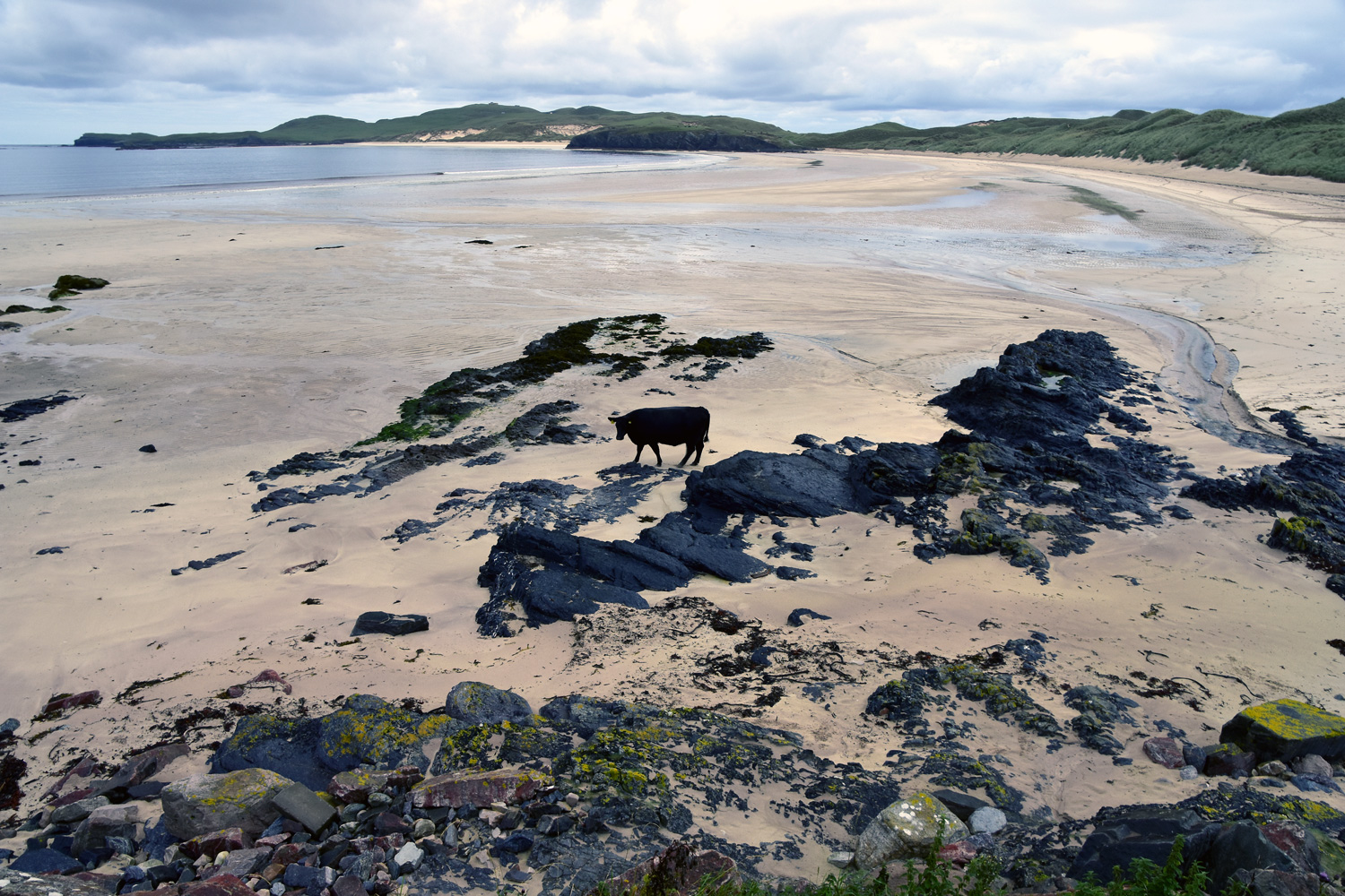 The deserted beach at Balnakeil Bay, except for the odd cow!