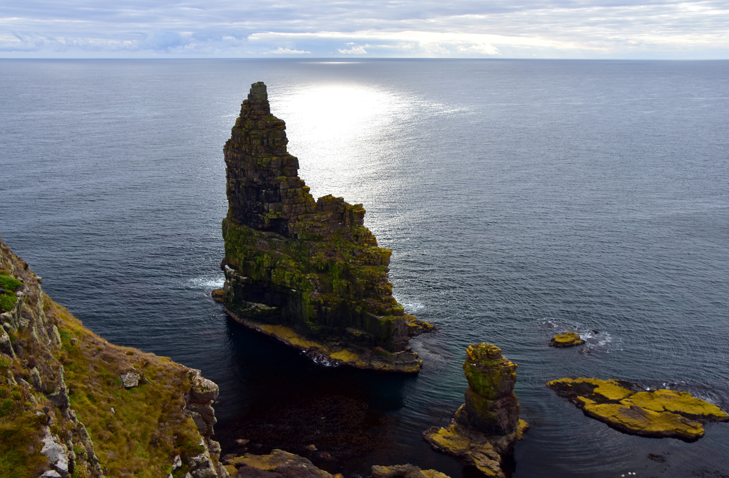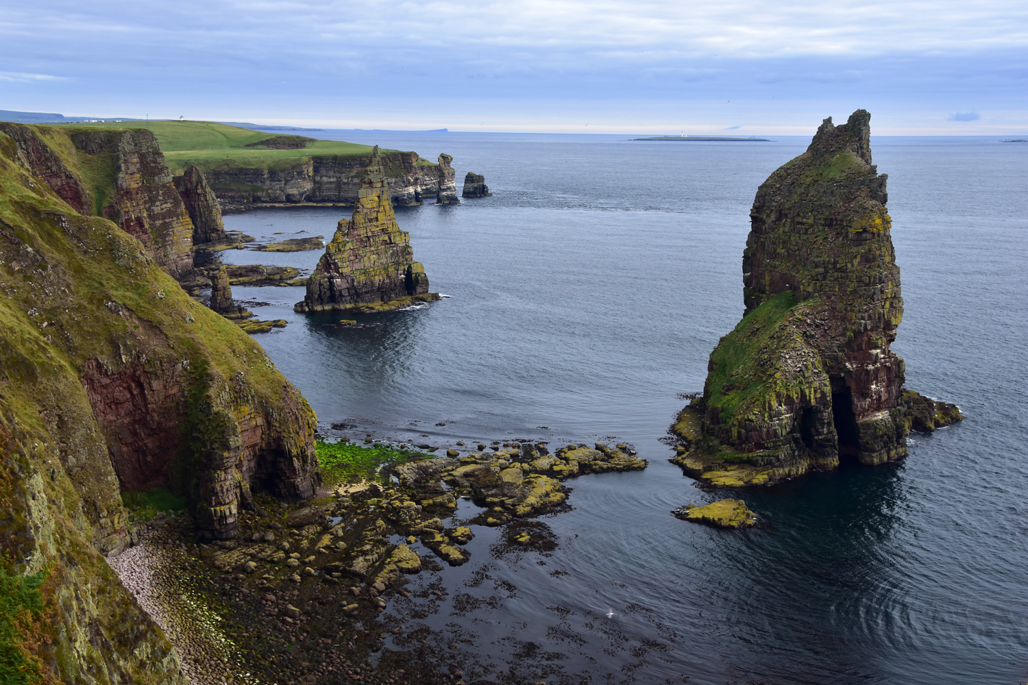 All four stacks visible from the cliff top