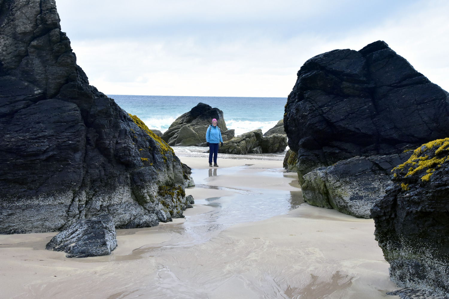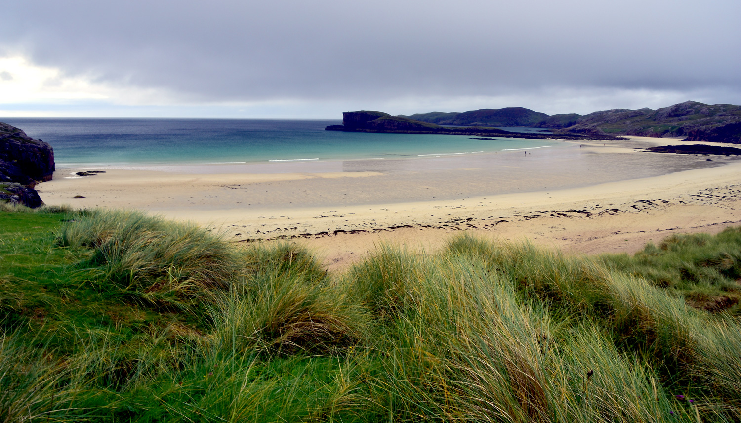 Just before arriving at our accommodation in Polin, just north of Kinlochbervie we stopped at a local beach called Oldshoremore – Wow! What a stunning bay and stretch of sand. Even though the skies were grey, the sea was a wonderful azure blue
