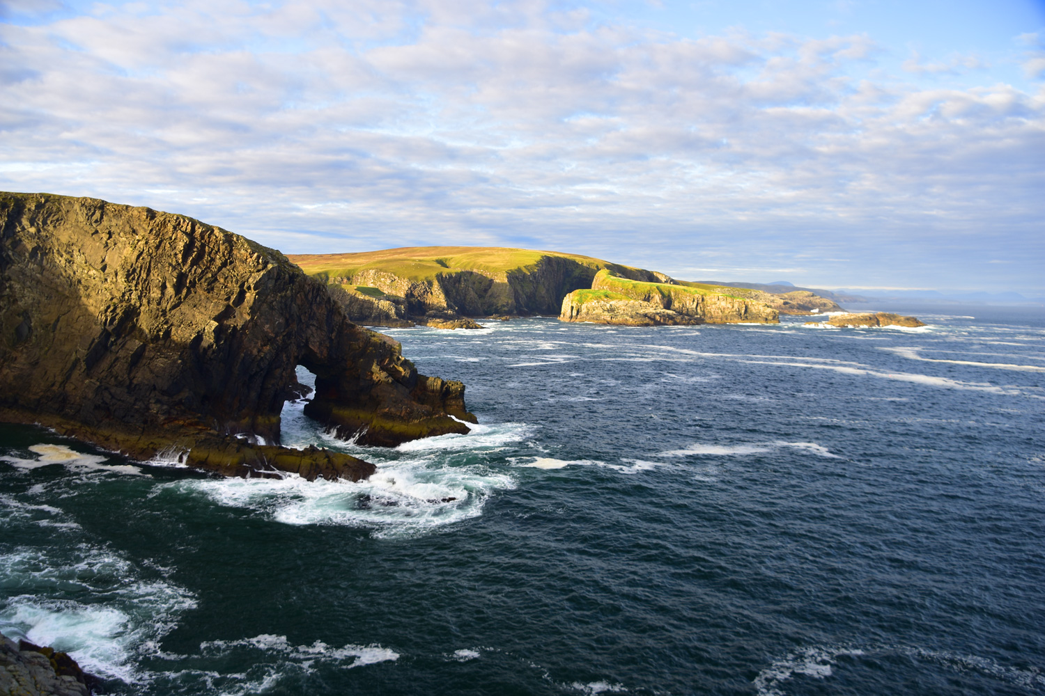 Natural rock arch and beautiful coastline beyond