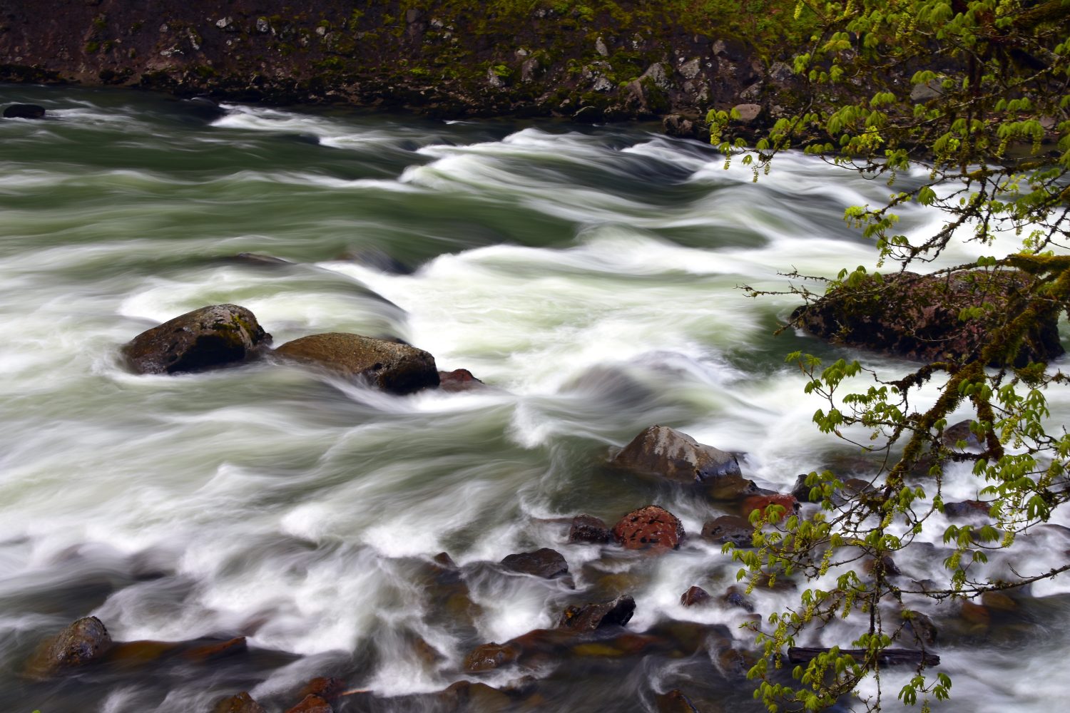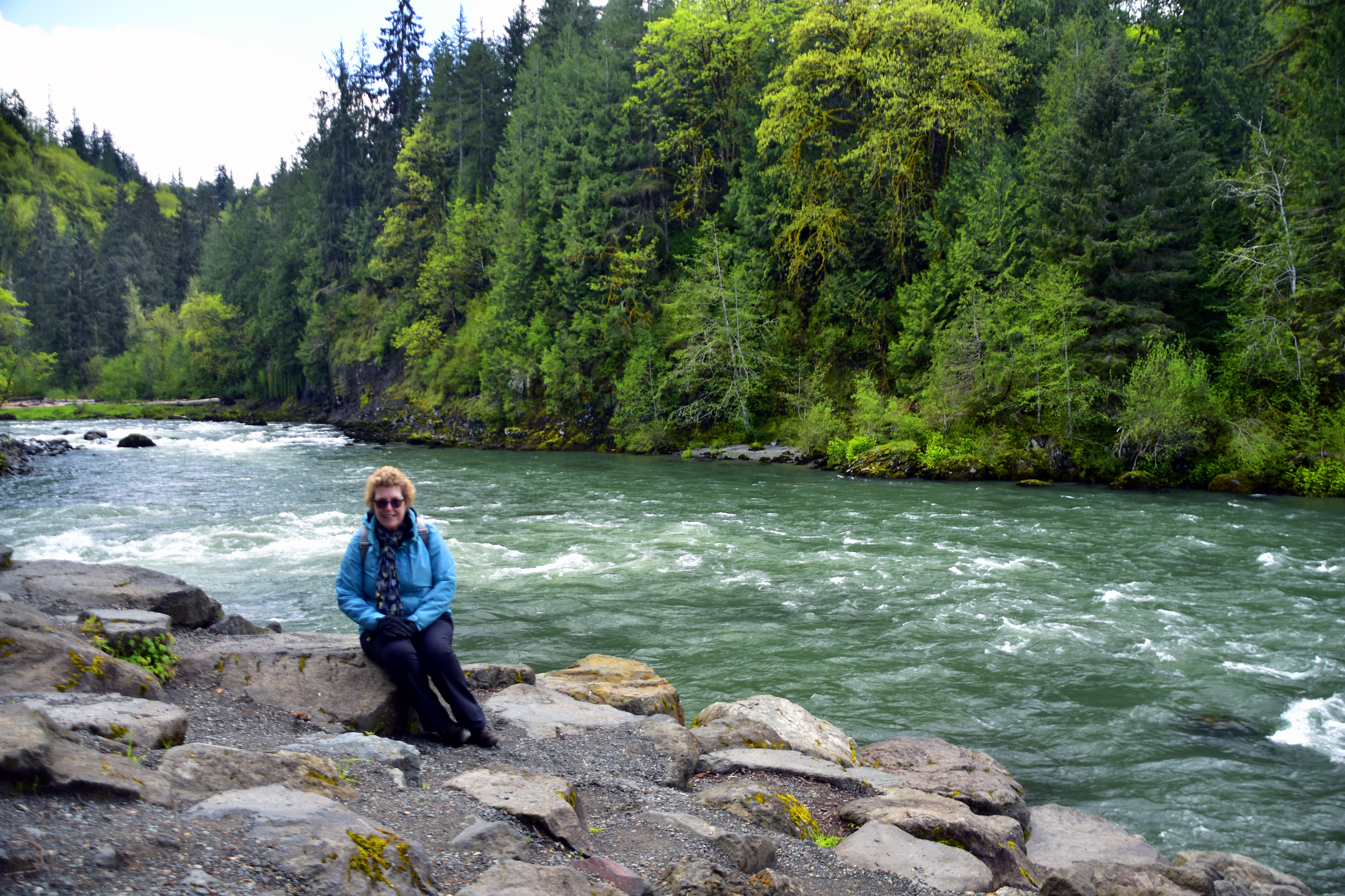 Charlotte enjoying the Snoqualmie River downstream from the falls