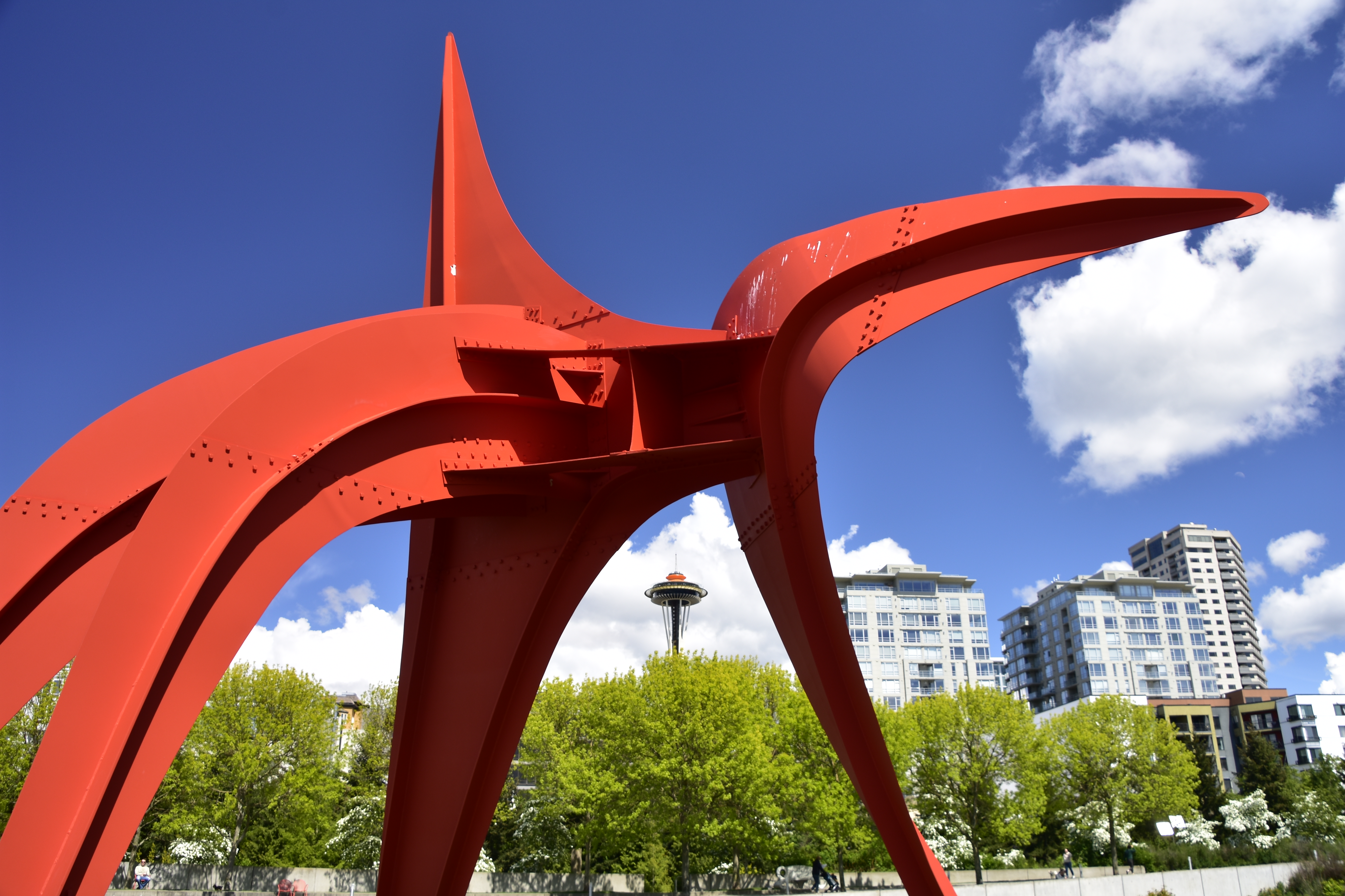 The Eagle – The sculpture nicely frames the Space Needle in the distance.