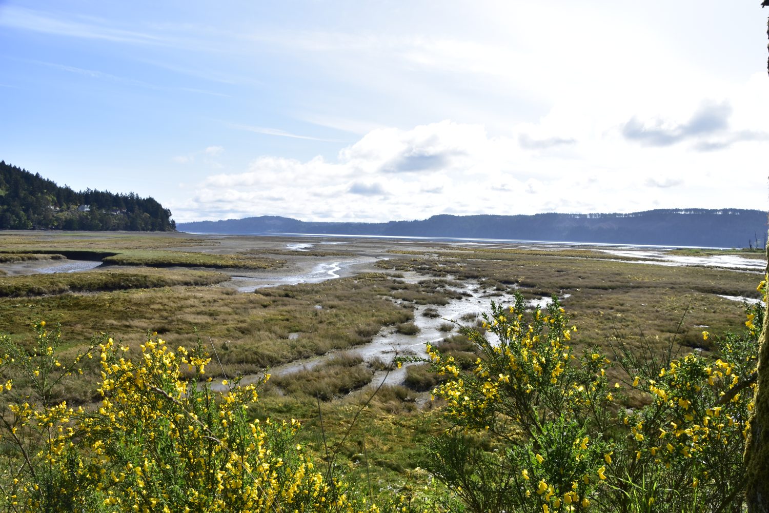Dosewallips River Delta is an estuary into the Hood Canal. It is where freshwater from the river enters the saltwater of the sea. At this point the delta forms a rich environment of mudflats, eelgrass beds and salt marshes laced with brackish streams.