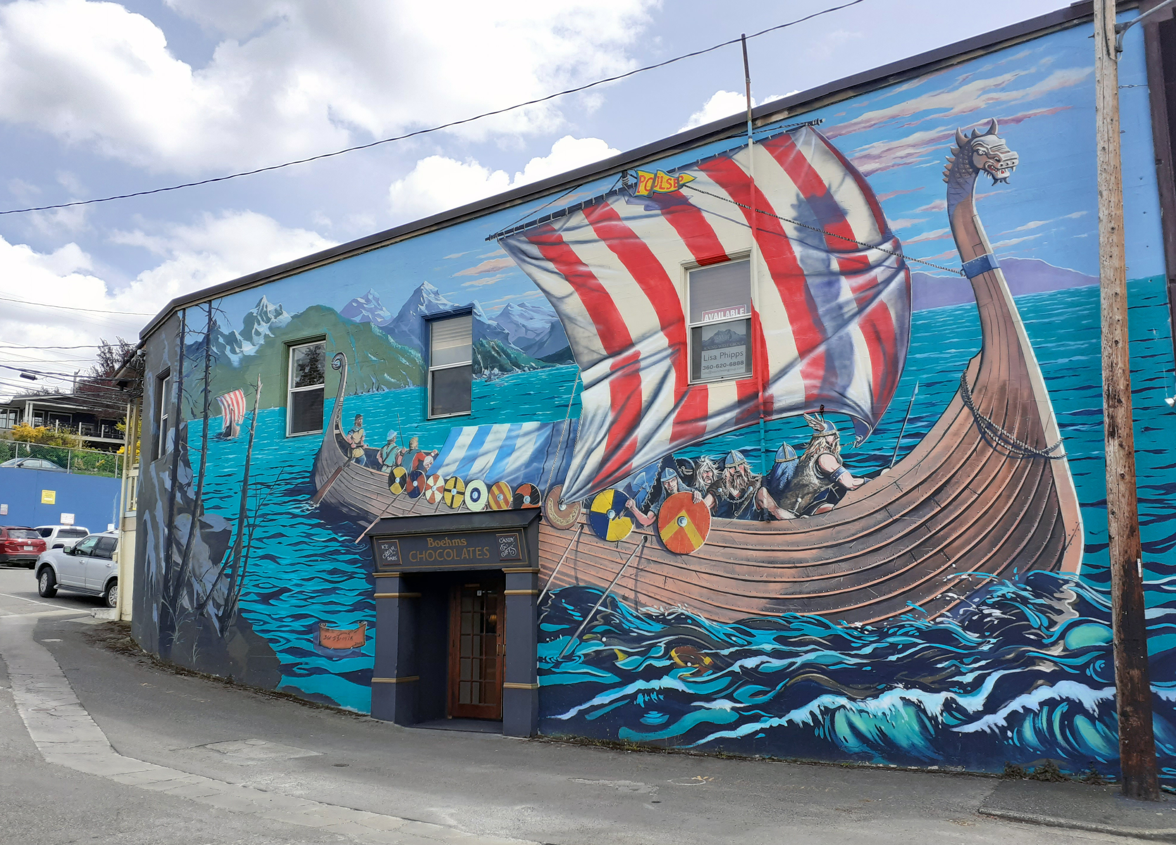 On route from Seattle, we drove through Poulsbo and were surprised to find that we had arrived in Norway. The floral patterns that decorate the shutters and doors of the local shops and businesses are an example of rosemaling, a Norwegian folk art. These embellishments help create the fairy tale ambiance that makes you wonder if you are in the real world, or if you have inadvertently stepped into a Hans Christian Anderson story book.