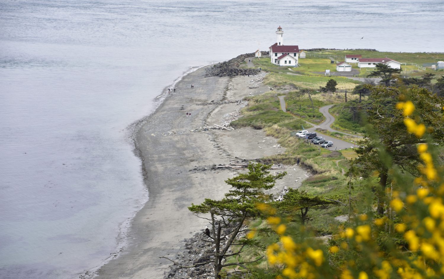 Point Wilson Lighthouse is located at the tip of the peninsula at the entrance to Admiralty Inlet, the waterway connecting the Strait of Juan de Fuca and Puget Sound. A Bald Eagle can be seen in the tree at the bottom of the picture – see also below.