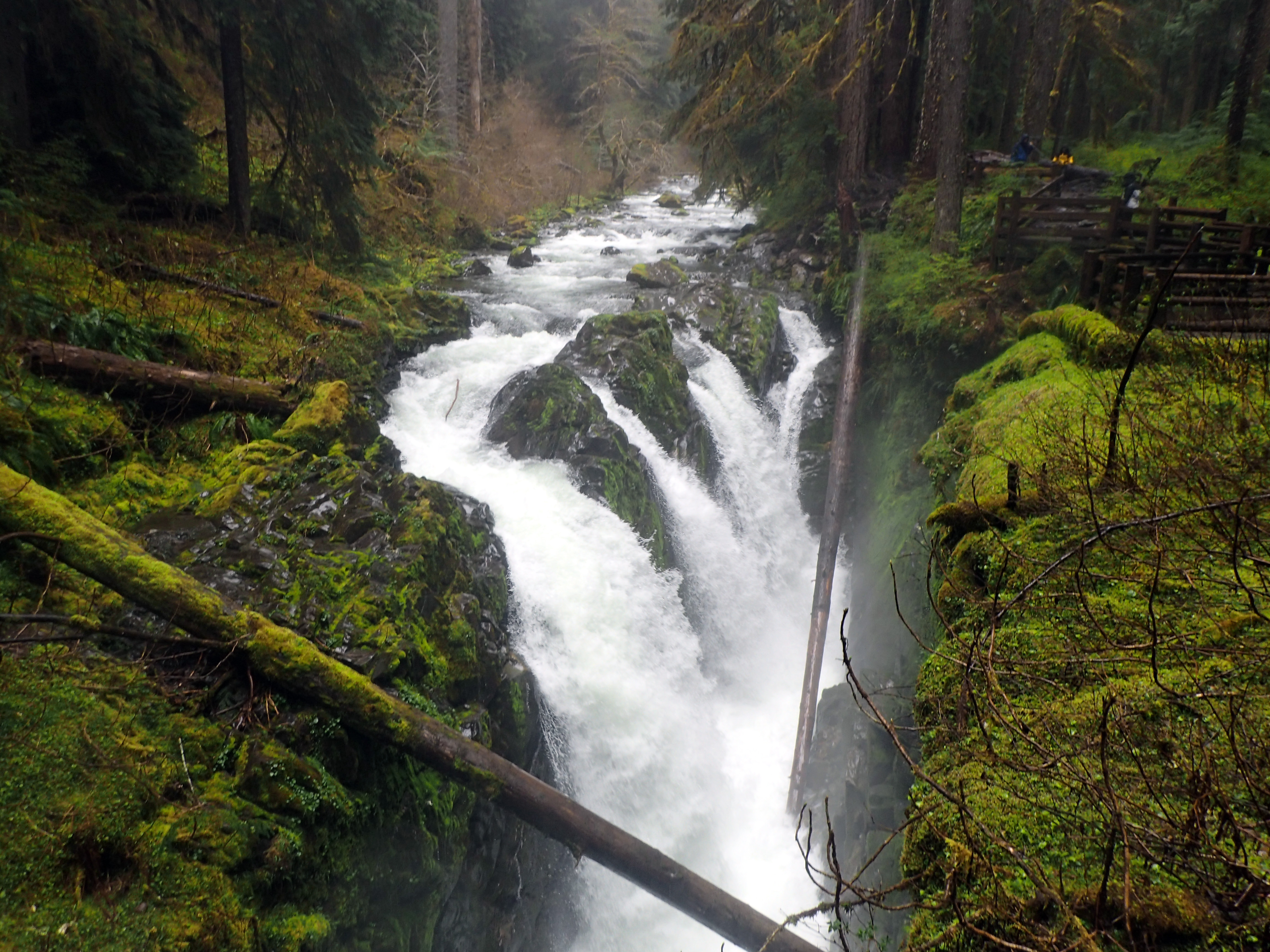 On another rainy day we headed for Sol Duc Falls, which is another popular attraction in the Olympic National Park. It’s not a tall waterfall, but the unique grace, beauty and power of its triple falls are a popular draw for visitors. The falls are accessed via a 2-mile circular-hike through a rain forest that runs part way along the rapids of the Sol Duc River.