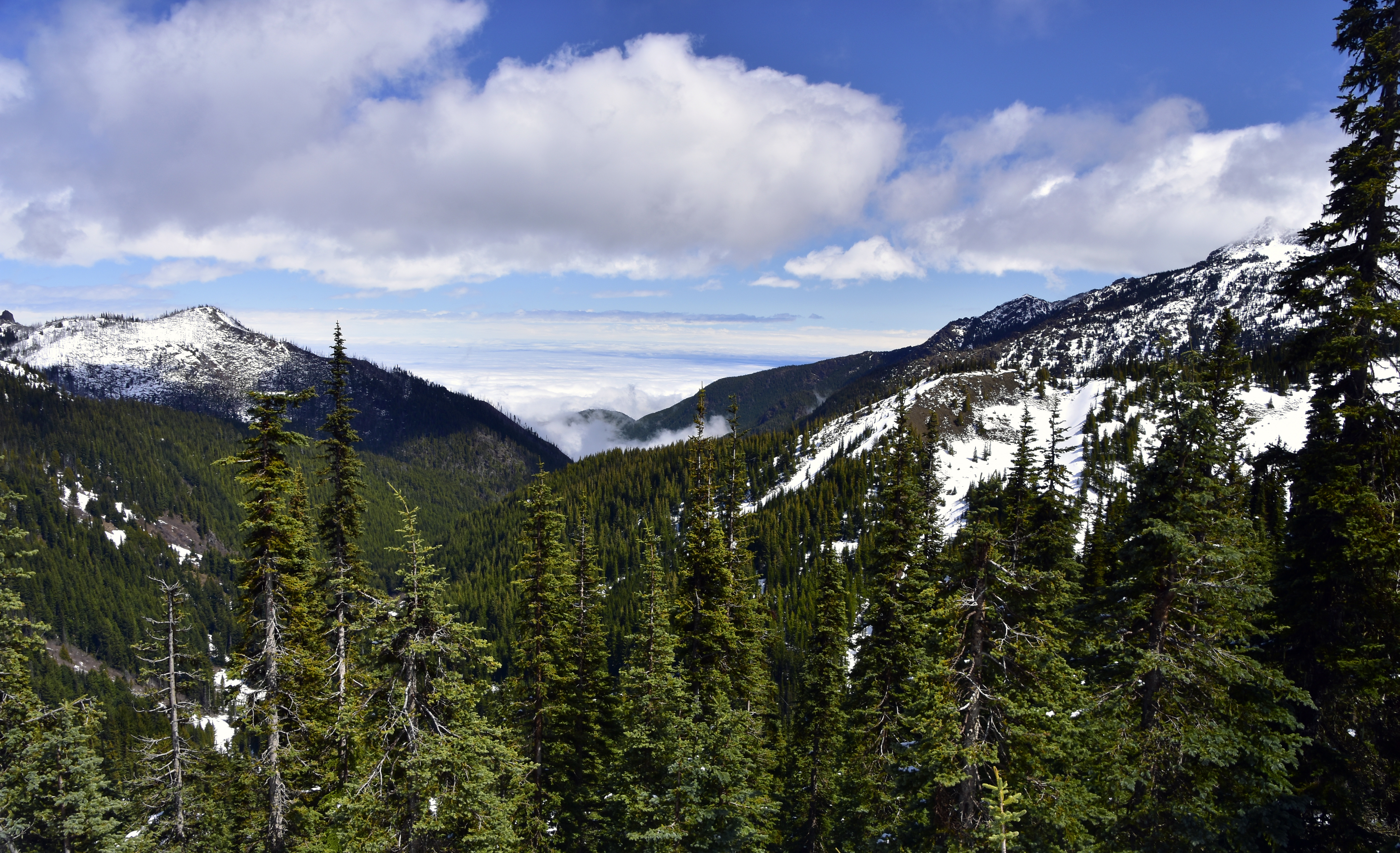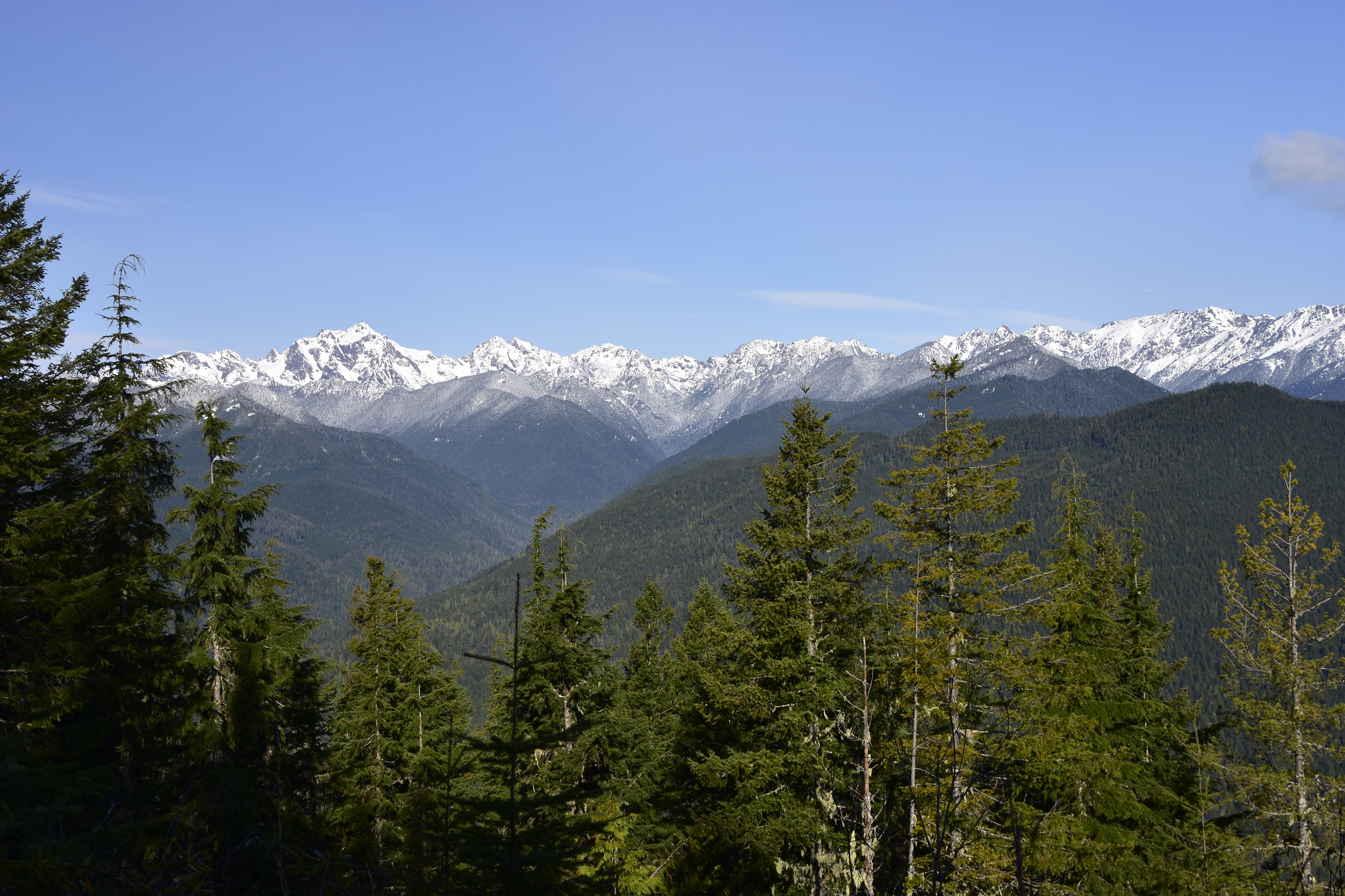 Looking north to the Olympic Mountains. The left hand peak is Mt. Constance, and at 7,743 ft. is one of only three mountains in the range to exceed 7,000 ft.
