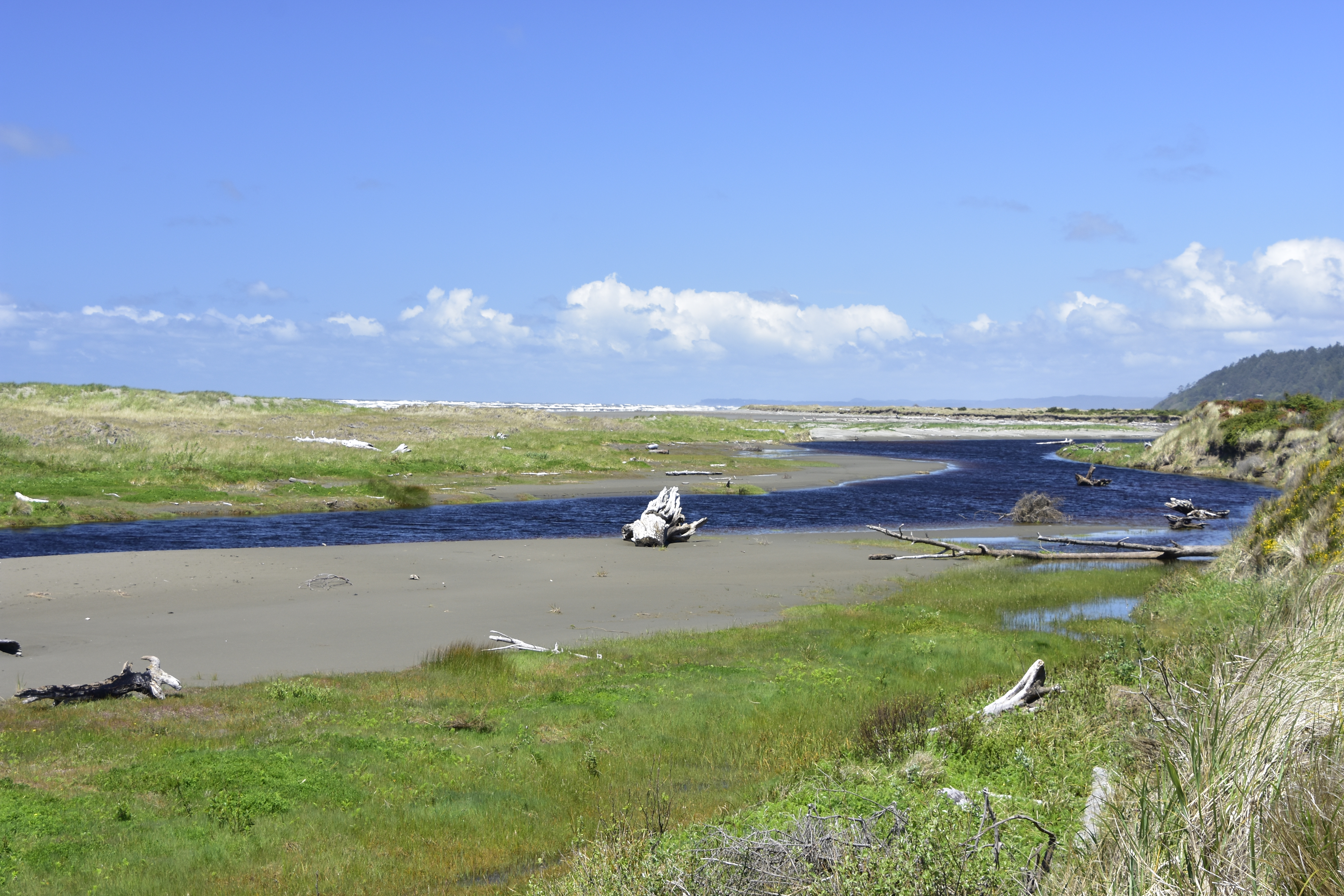 Griffiths-Priday State Park is located on the Pacific coastline where the freshwater River Copalis flows in to the Pacific Ocean. We walked a 2-mile trail in the dunes alongside the river to the headland and beach.