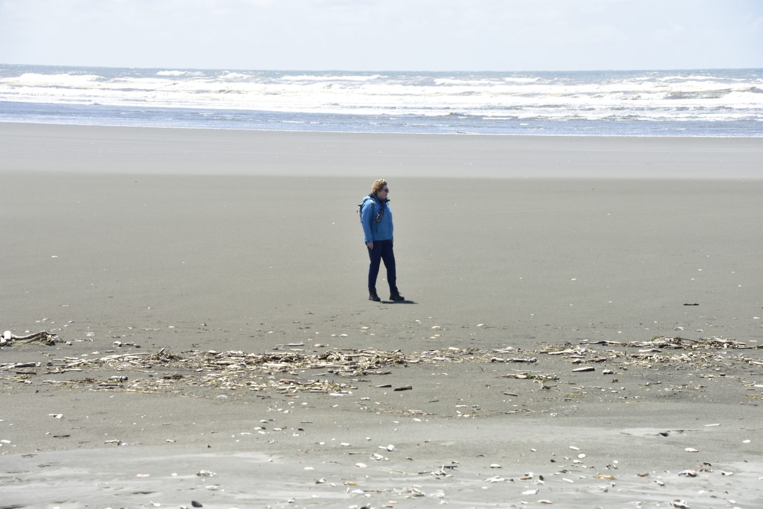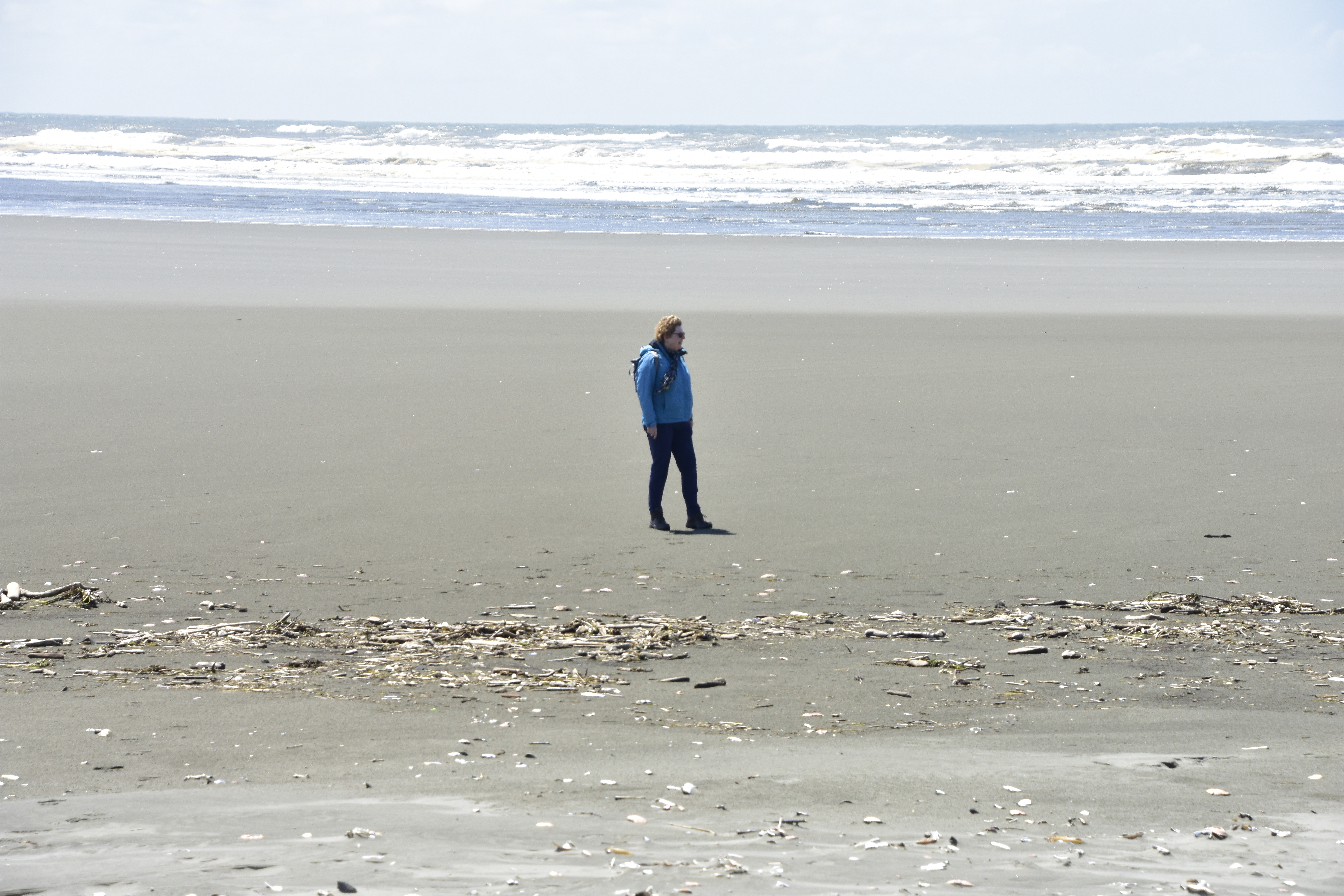 Charlotte enjoying the solitude of the beach and Pacific Ocean – we were the only people on the beach as far as the eye could see!