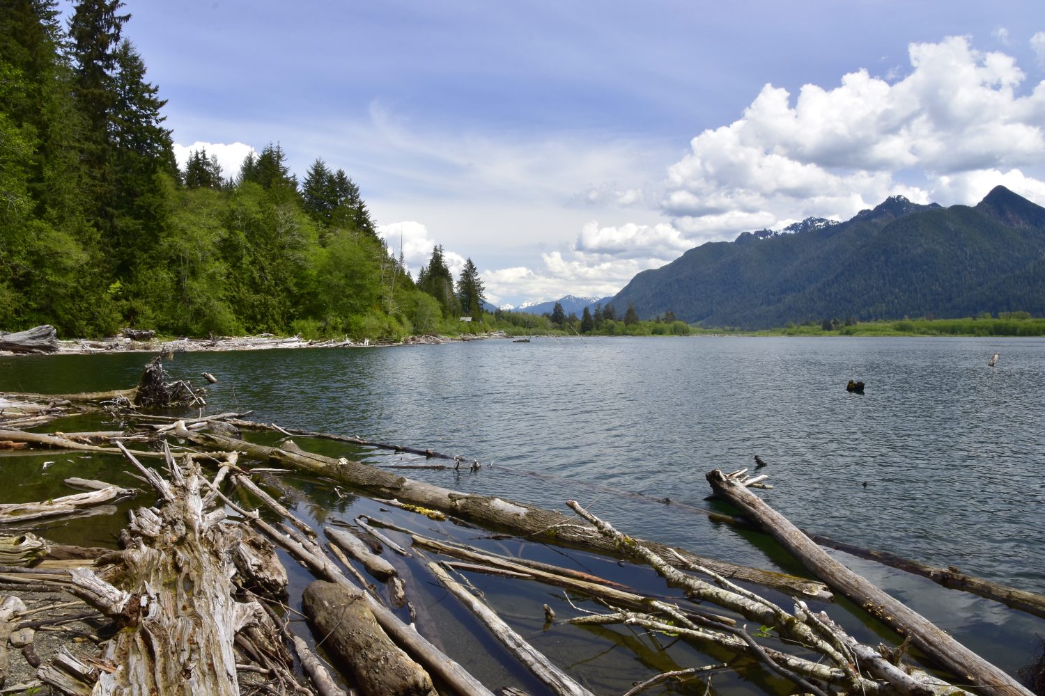 View across the eastern end of Lake Quinault to the Olympic Mountains.