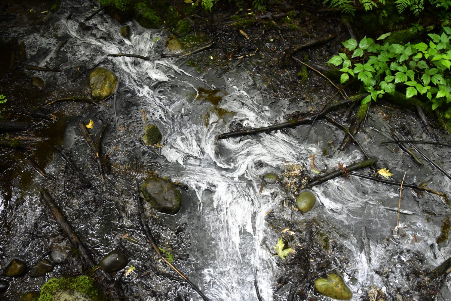 Bubbling Geyser – The methane is broken down by microbes in the surrounding area, which then reacts with Calcium found in the water to produce Calcium Carbonate. This settles on the water as a grey residue.