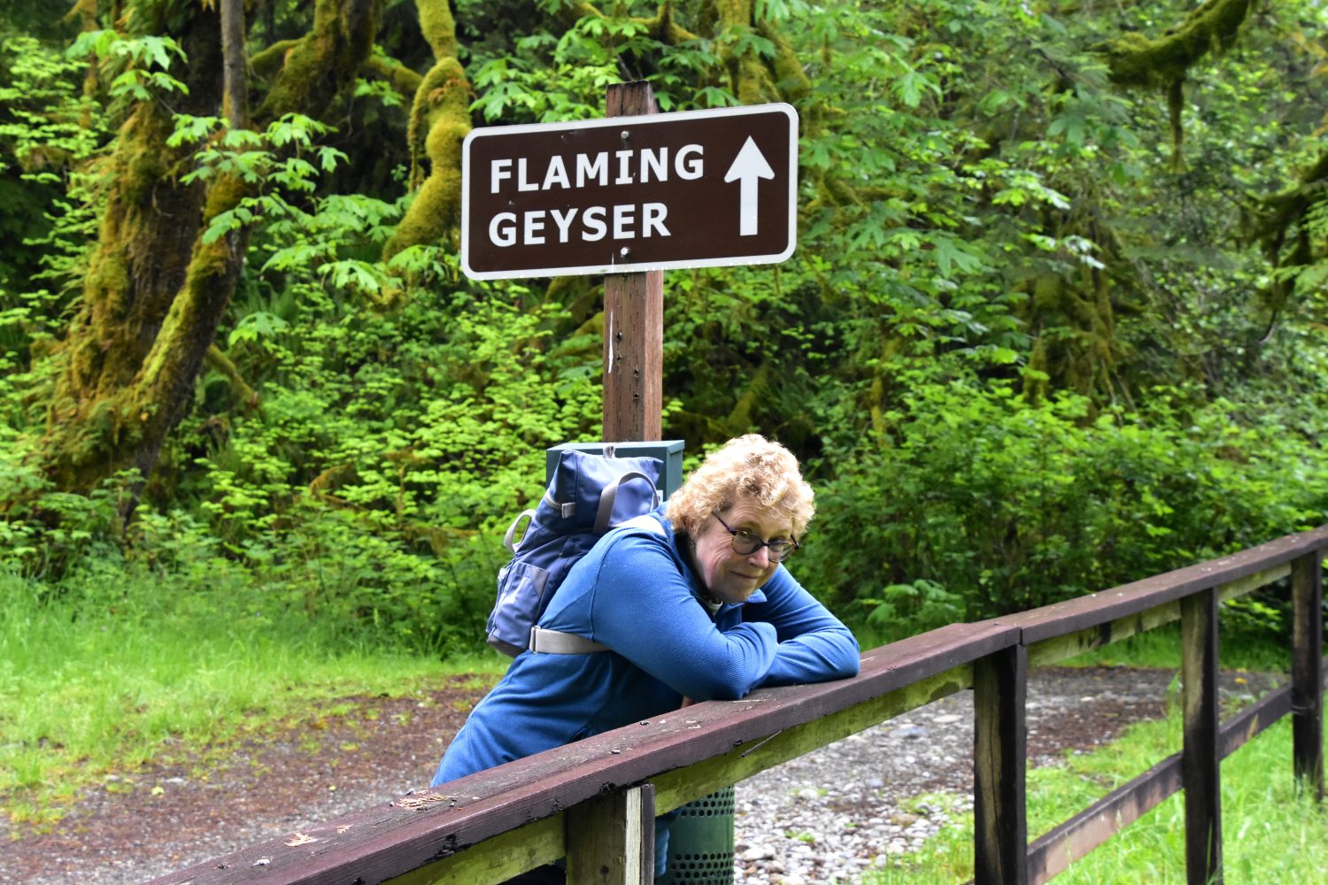 Charlotte is disappointed after visiting the flaming geyser that is no longer flaming – expectations met!