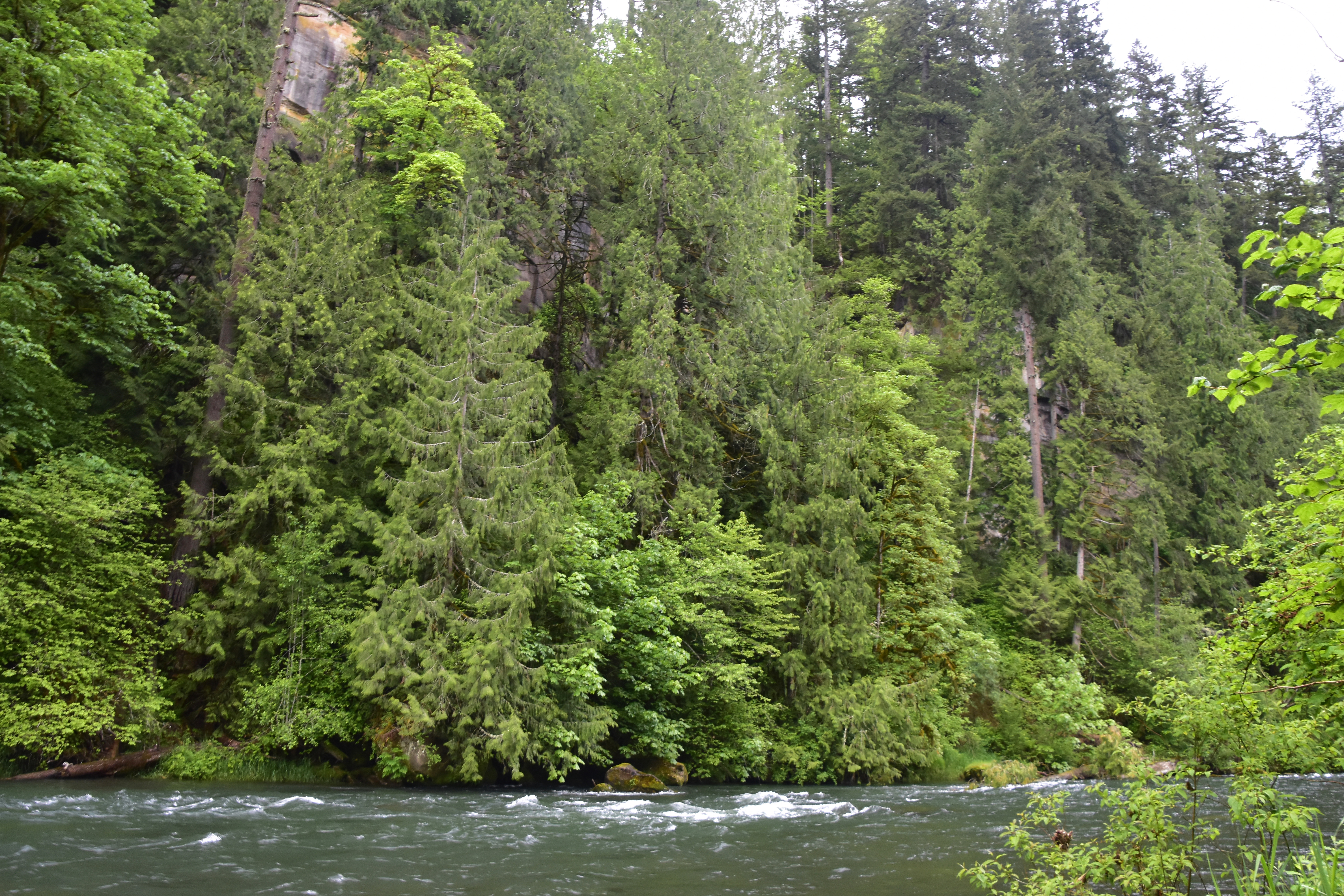 The steep cliff walls of the Green River Gorge can been seen at the end of the shoreline hiking trail that follows the fast flowing Green River.