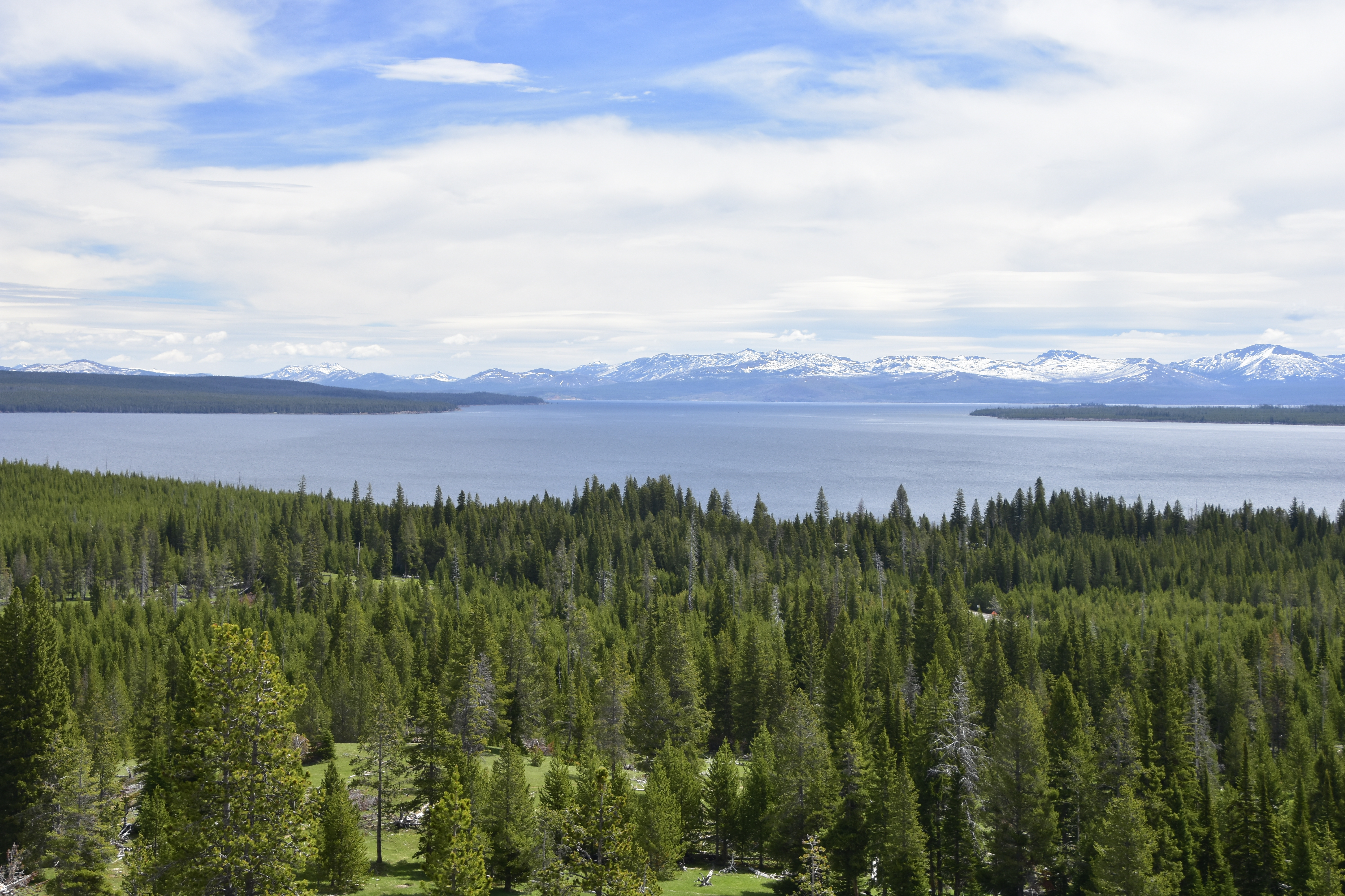 Situated at 7,733 feet above sea level, Yellowstone Lake is the largest high elevation lake in North America. It is approx. 20 miles long and 14 miles wide and freezes over completely in winter. The Absaroka Mountains provide a beautiful backdrop for the lake.