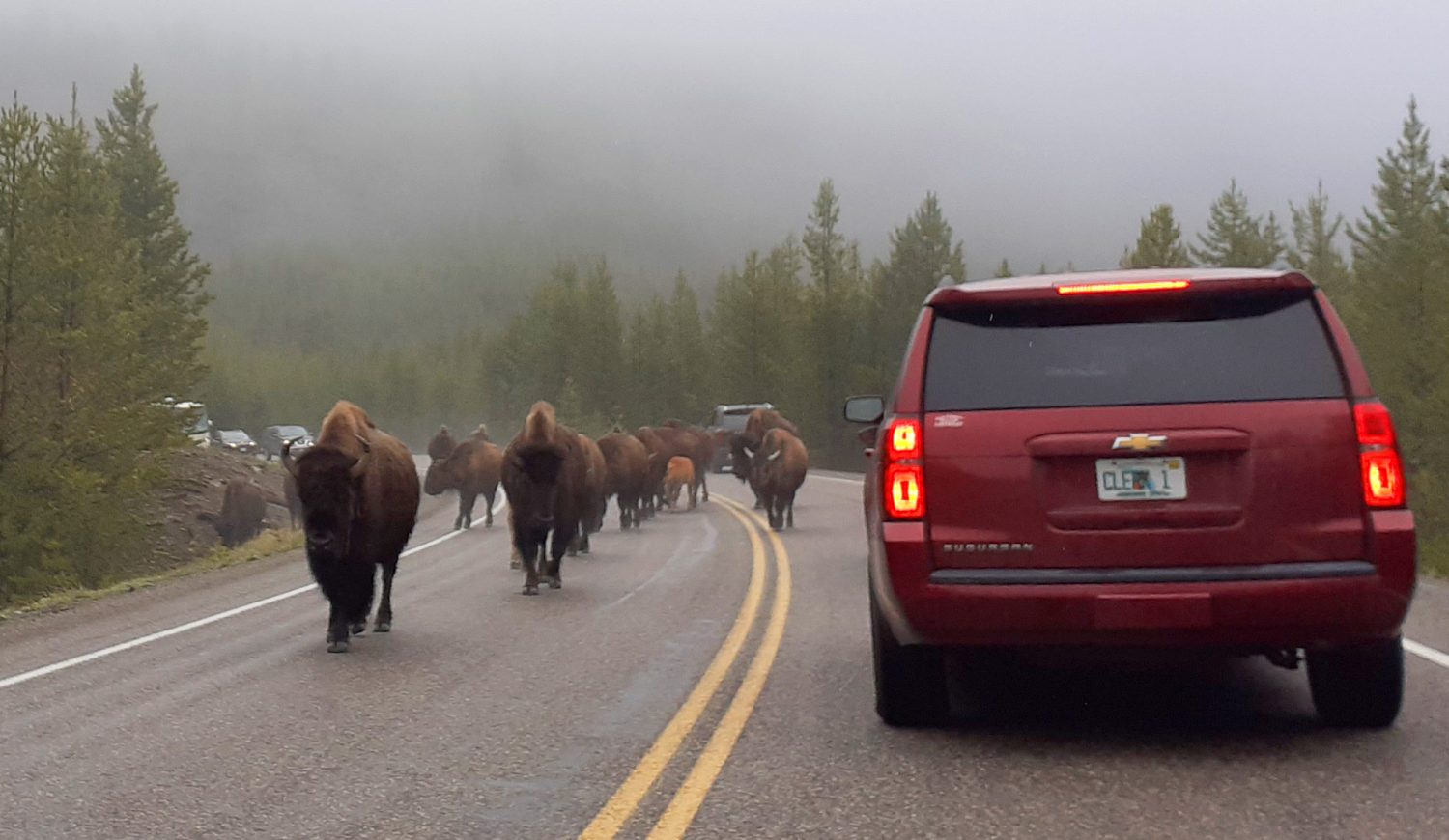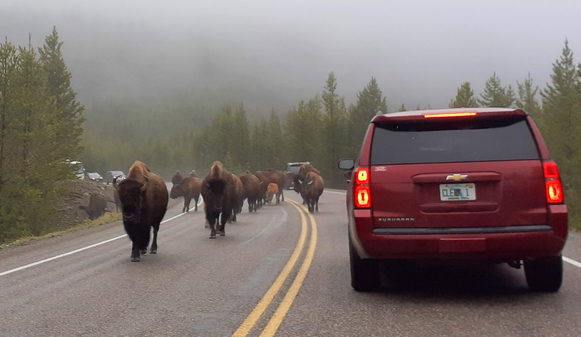 It was often slow-going driving around the park, particularly when you got stuck in a Bison traffic jam!